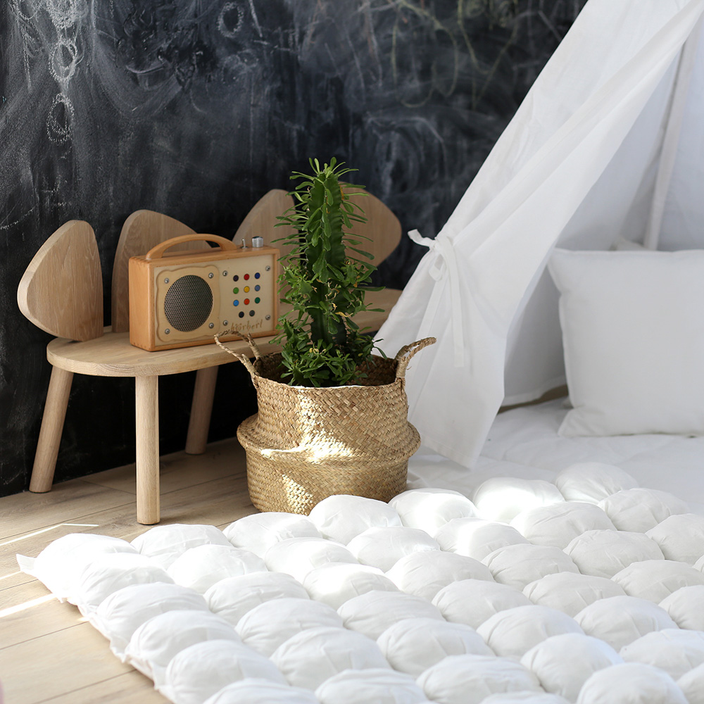 Приятные особенности: Коврик Бомбон для вигвама Simple White подходит для вигвама и игр на полу - вот это настоящий простор для фантазии! Коврик Бомбон - самый универсальный в коллекции, он подходит ко всем вигвамам из каталога, и не менее выигрышно смотрится сам по себе. Коврик будет отлично смотреться в любом интерьере. Пледик выполнен из натуральных материалов.