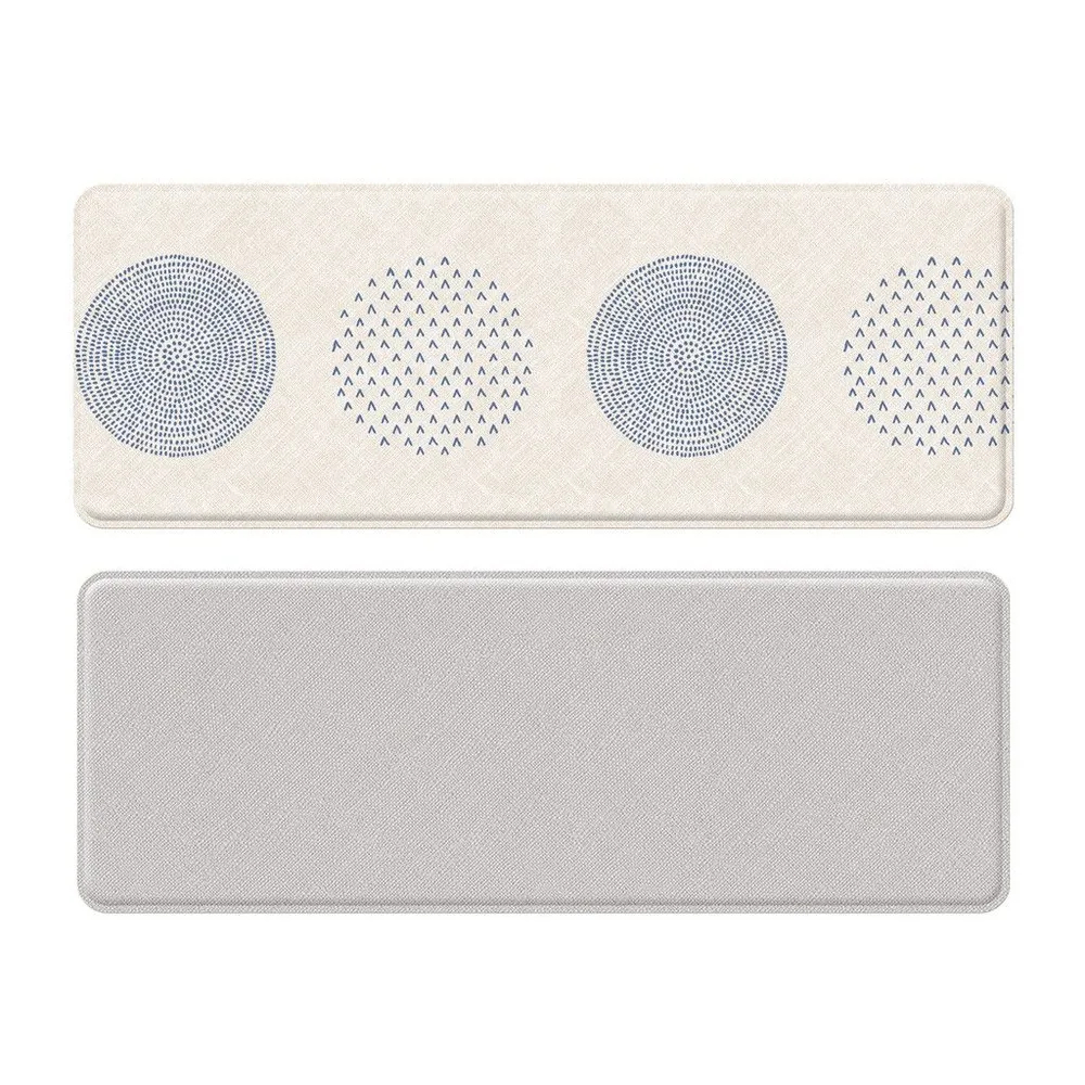 Приятные особенности:Знаете, какая геометрическая фигура признана психологами самой позитивной?Конечно, же это круг.А точнее, голубой кружок на нашем кухонной дорожке.Кухня, туалетная комната, постирочная, прихожая, лоджия или дача – эта ковровая дорожка везде будет смотреться уместно.Кухонные коврики и дорожки Kitchen mat от Parklon защитят пол на кухне в наиболее загрязняемых зонах, сделают уборку проще и уменьшат боль и напряжение в ногах и спине. Можно использовать не только на кухне, но и ванной, на лоджии, в качестве прикроватного коврика и как коврик для замены подгузника.Серия изготовлена из удивительно нежного и приятного к телу безопасного поливинилхлорида.ПВХ – прочный, практичный и долговечный материал. На ощупь нежный и приятный, эластичная поверхность пружинит, обеспечивая легкий массажный и ортопедический эффект.Расположите коврик в той зоне, где проводите стоя на ногах больше всего времени, и уже через несколько недель вы ощутите уменьшение отеков и тяжести, а также болей в коленях и пояснице.Поверхность не впитывает воду и не накапливает грязь и пыль, легко отмываются даже застывшие капли жира.