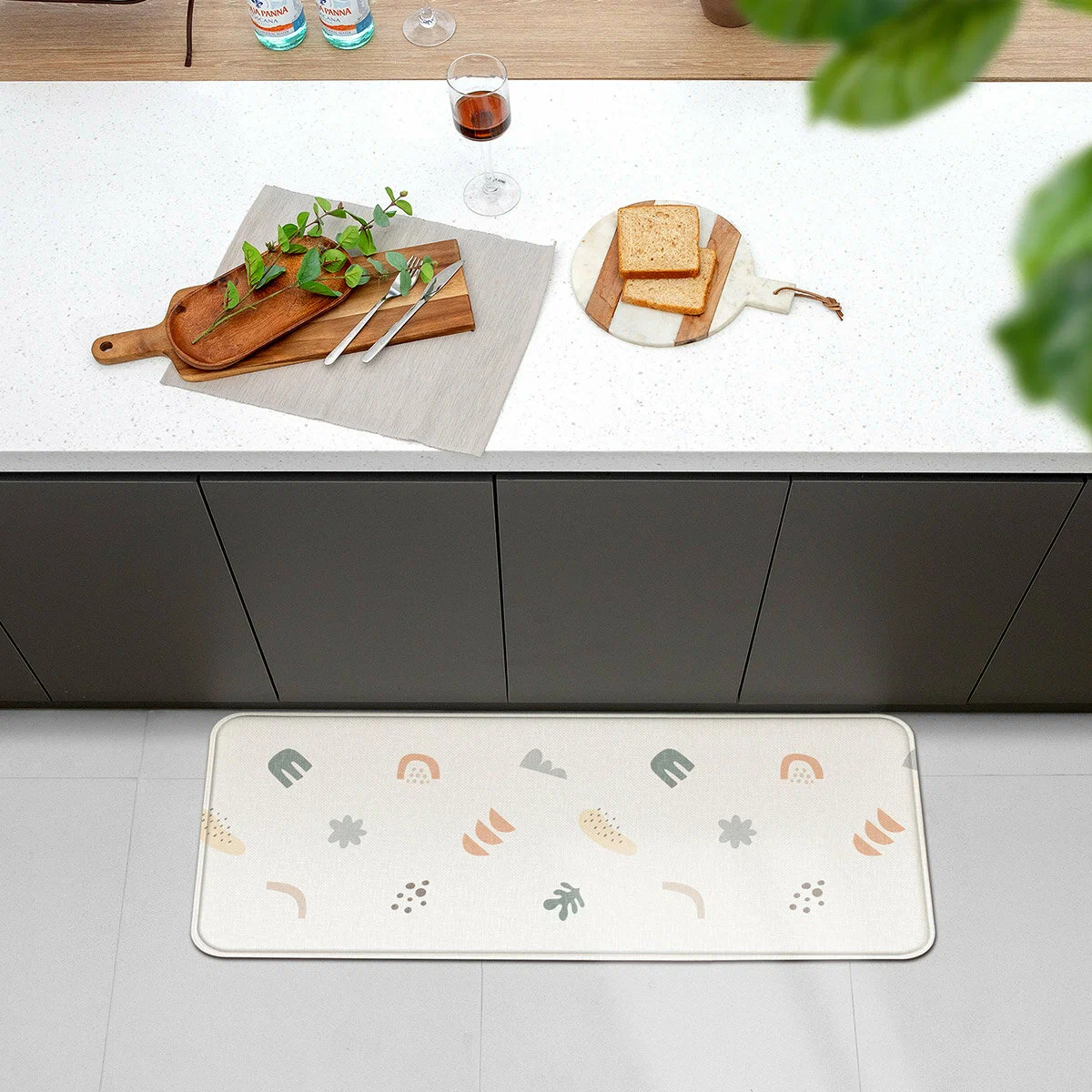 Приятные особенности:Красивая и функциональная кухонная дорожка с современным принтом станет не только уютным дополнением к интерьеру, но и позаботится о здоровье ваших ног. Двусторонний принт позволит менять настроение кухни от более классического, сдержанного до немного игривого и позитивного, акцентного. Увеличенная длина дорожки 210 см позволит комфортно чувствовать себя во время хлопот на кухне."Кухонные коврики и дорожки Kitchen mat от Parklon защитят пол на кухне в наиболее загрязняемых зонах, сделают уборку проще и уменьшат боль и напряжение в ногах и спине. Можно использовать не только на кухне, но и ванной, на лоджии, в качестве прикроватного коврика и как коврик для замены подгузника.Серия изготовлена из удивительно нежного и приятного к телу безопасного поливинилхлорида.ПВХ – прочный, практичный и долговечный материал. На ощупь нежный и приятный, эластичная поверхность пружинит, обеспечивая легкий массажный и ортопедический эффект.Расположите коврик в той зоне, где проводите стоя на ногах больше всего времени, и уже через несколько недель вы ощутите уменьшение отеков и тяжести, а также болей в коленях и пояснице.Поверхность не впитывает воду и не накапливает грязь и пыль, легко отмываются даже застывшие капли жира.