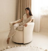 Приятные особенности: Мягкое кресло Amari на поворотном основании модель Лепестки. Универсальный размер дети-взрослые, размер круглого сидения между подлокотниками Ф 65 см, габаритные размеры ширина 88 см, глубина 85 см,высота сидения 45 см, общая высота по спинке 78 см. Невероятно мягкое сидение, поворотная база и пуховые декоративные подушки завершают шикарный образ этой модели кресла.