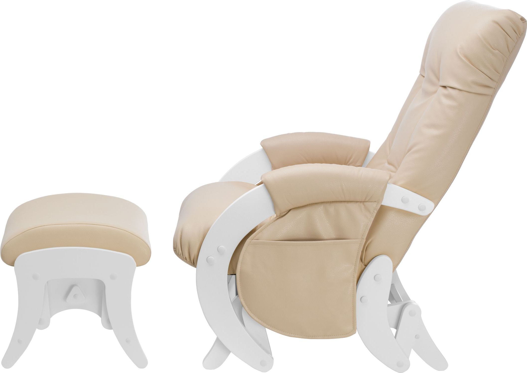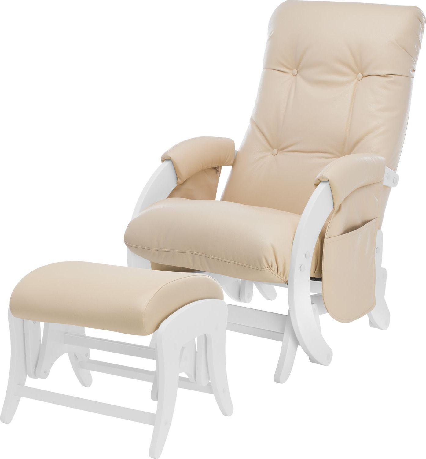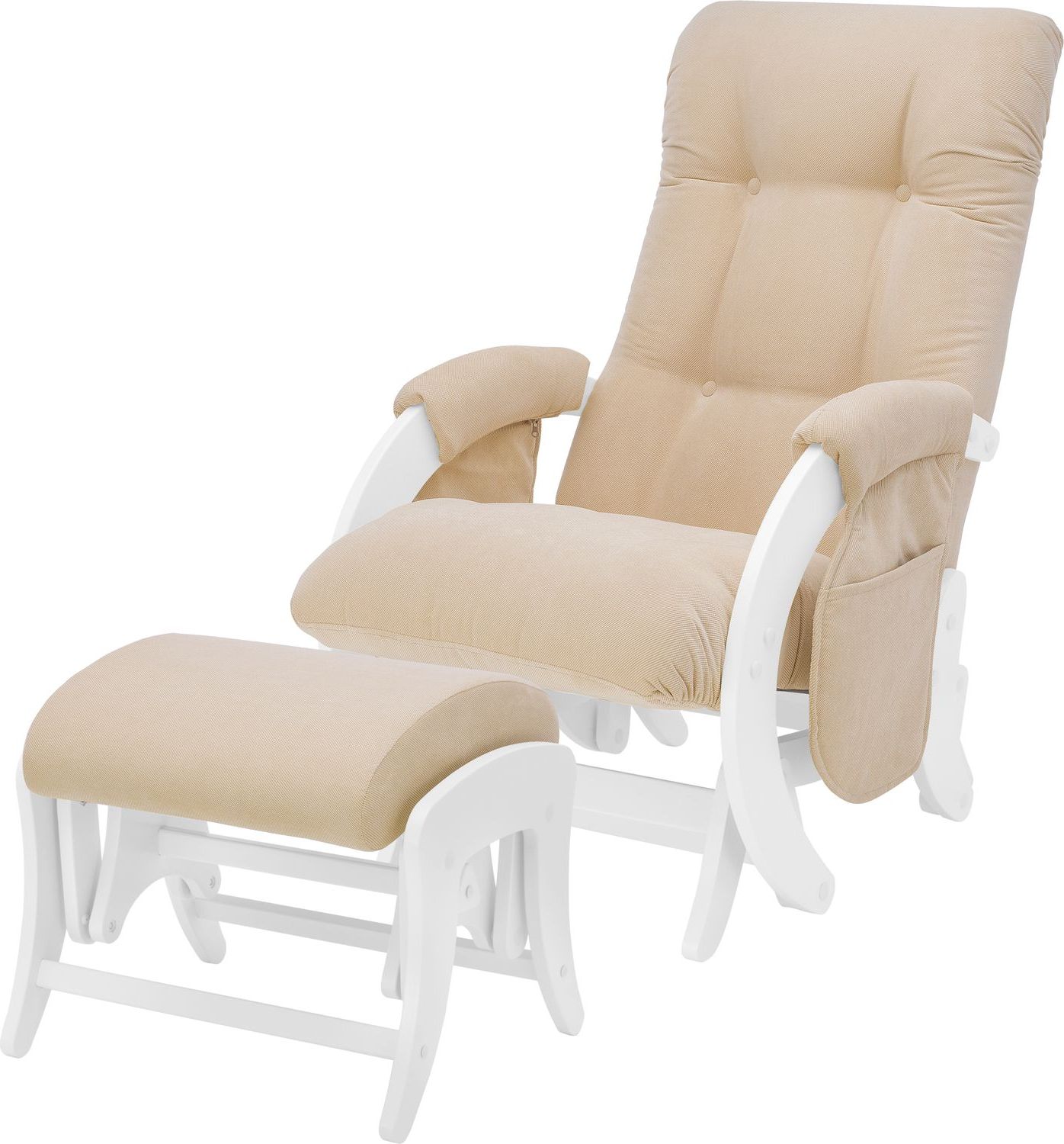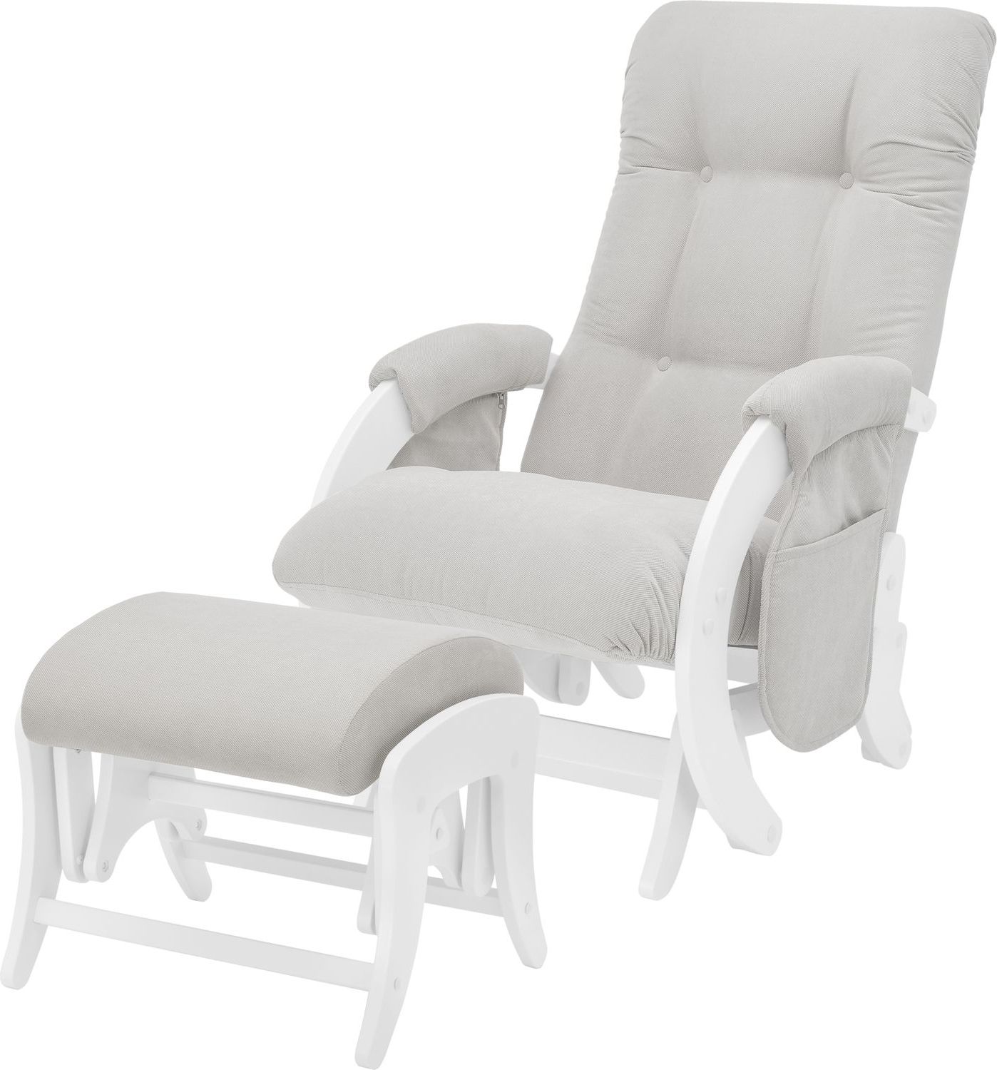 Приятные особенности :Состоит из изящного кресла-качалки и компактного мягкого пуфика для ног. Его можно использовать на любой неповрежденной поверхности. Надежный, бесшумный маятниковый механизм обеспечивает ровное покачивание, которое способствует постепенному расслаблению мышц и, как следствие, отличному отдыху всего организма. Сидение имеет эргономичную форму и мягкие подлокотники, подголовник и спинка обеспечивают идеальное положение тела.Особенности конструкции кресла-глайдера для кормления Milli Smile обеспечивают ему полную устойчивость и исключают вероятность переворачивания. В производстве использованы только безопасные, гипоаллергенные материалы, которые не вызовут негативной реакции у детей, их родителей или домашних животных. При этом конструкция не требует постоянного техобслуживания, проста в установке и использовании. Кресло Milli Smile отлично подходит для укачивания новорожденных, особенно в период колик, когда маленькие детки засыпают с трудом и не желают спускаться с рук матери. Кроме того, компактные размеры и изысканный неброский дизайн позволит ему вписаться практически в любой интерьер.Для еще большего комфорта в комплекте с креслом-качалкой Milli Smile поставляется комфортный пуфик для ног. Он также оснащен плавным маятниковым механизмом, что позволяет ему покачиваться в унисон с креслом.