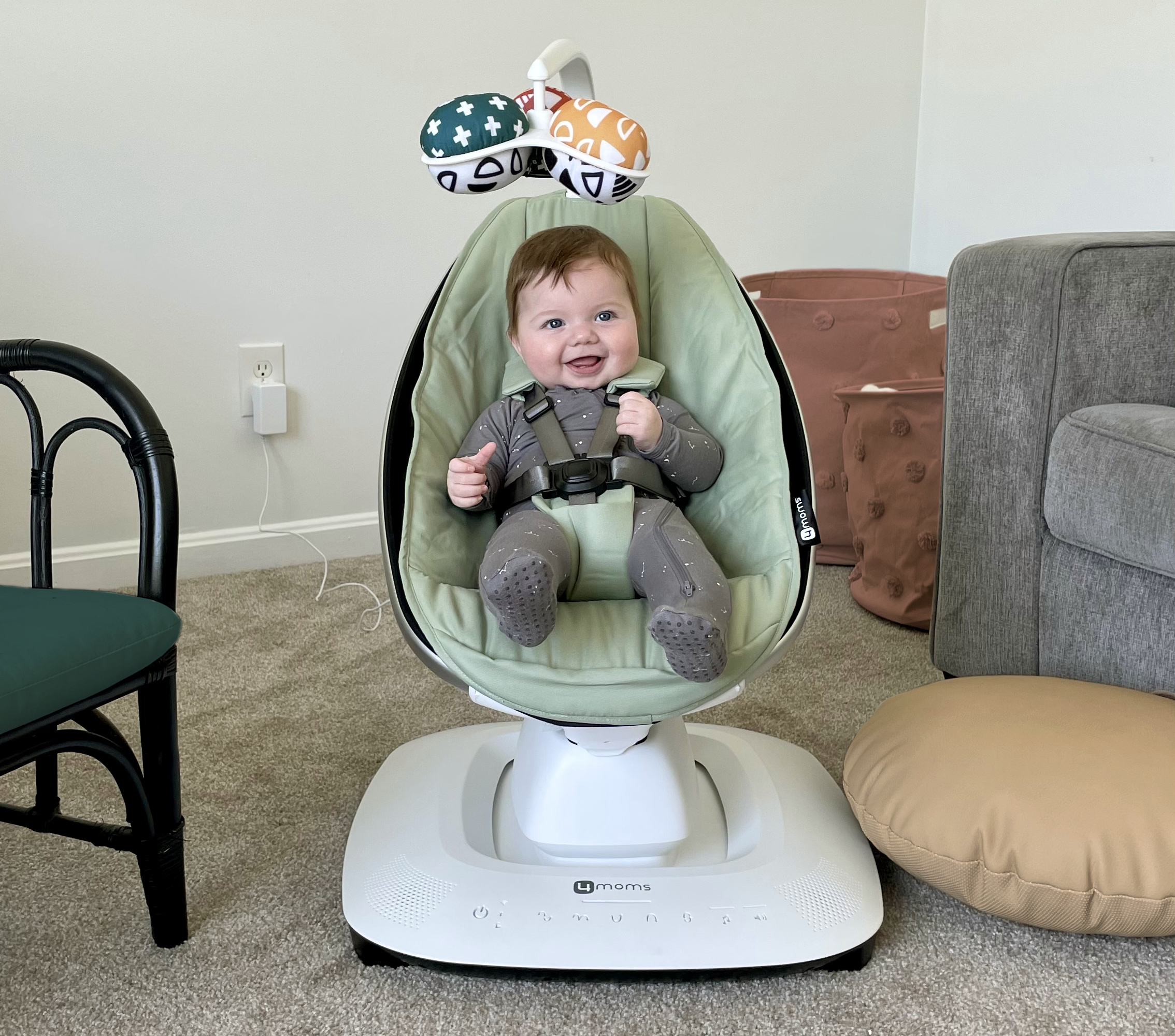 Кресло-качалка 4moms MamaRoo New— это единственные электронные качели, которые качают малыша так же бережно, как вы сами. Вдохновившись родительской заботой, мы сделали всё, чтобы движения этих качелей повторяли ваши естественные движения, а малышу в них было привычно и комфортно, как у мамы на ручках. MamaRoo New позволяет родителям освободить руки для своих важных дел, пока малыш занимается своими – наблюдает за окружающим миром и исследует его. Вперед, доставайте свои списки дел, их время пришло! Хорошо малышу – хорошо маме. Беспроигрышный вариант. Благодаря возможности комбинировать пять движений, пять скоростей и четыре звука, вы всегда сможете подобрать сочетание, которое понравится малышу, в каком бы настроении он ни был. Новая функция Find Your Roo™ в приложении 4moms поможет вам найти именно ту комбинацию, которая больше всего похожа на ваши привычные движения, облегчая перекладывание с рук в качели. А если у вас настроен умный дом, то Bluetooth и совместимость с голосовым управлением позволяют MamaRoo New интегрироваться в вашу систему.