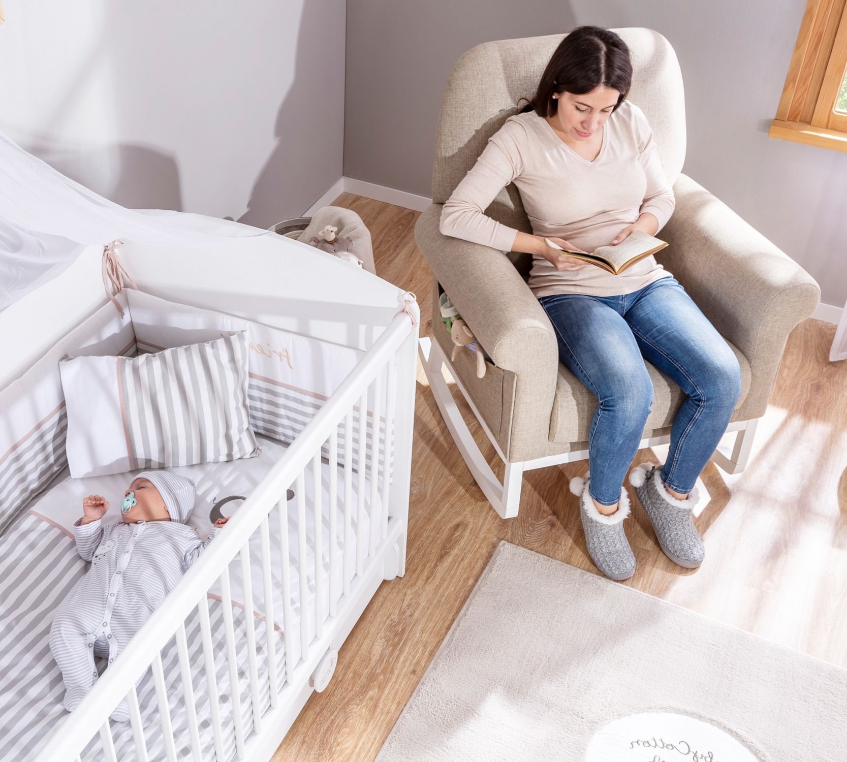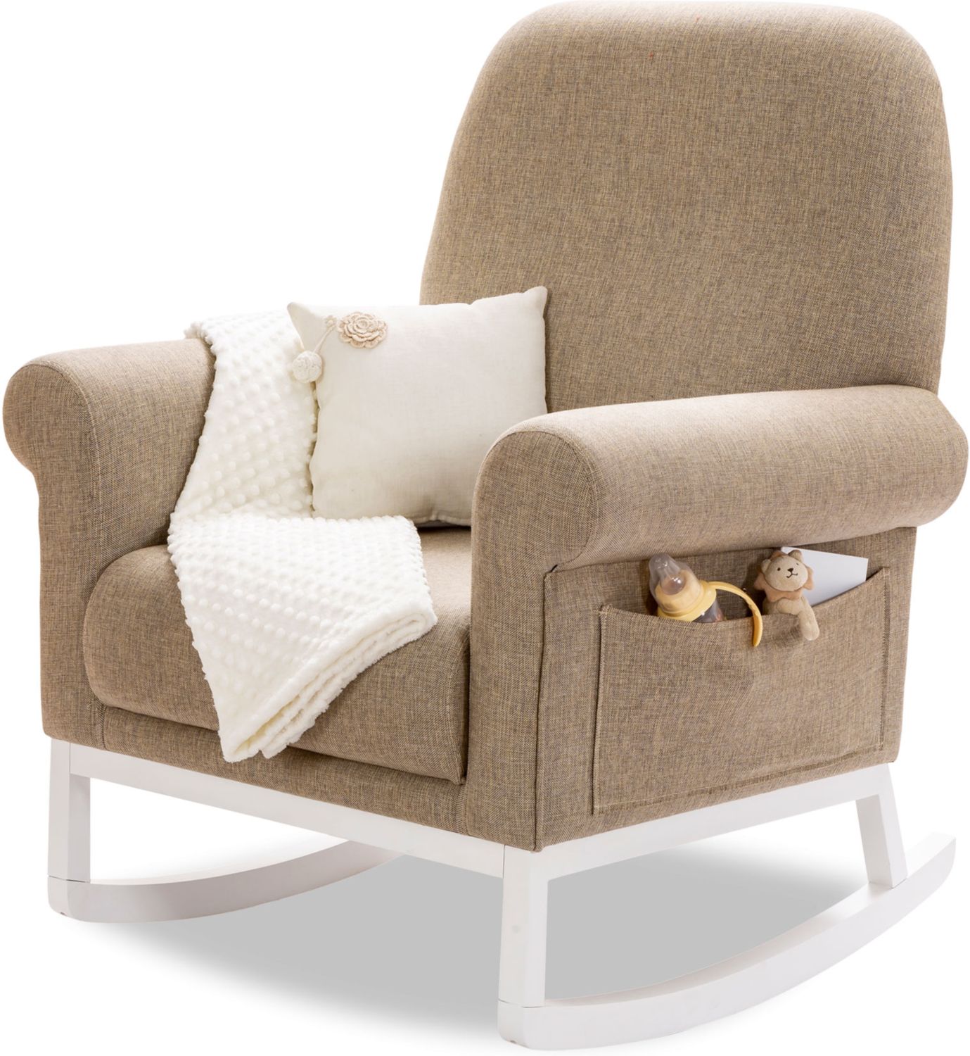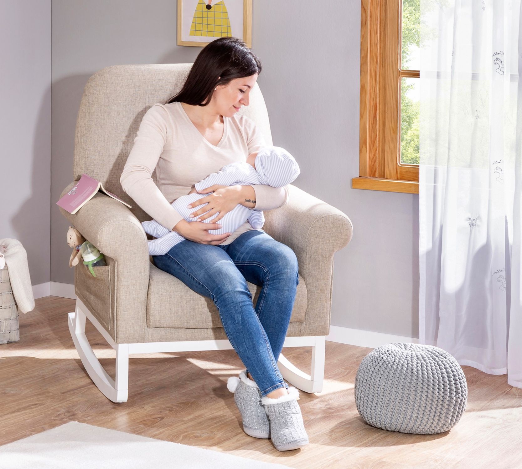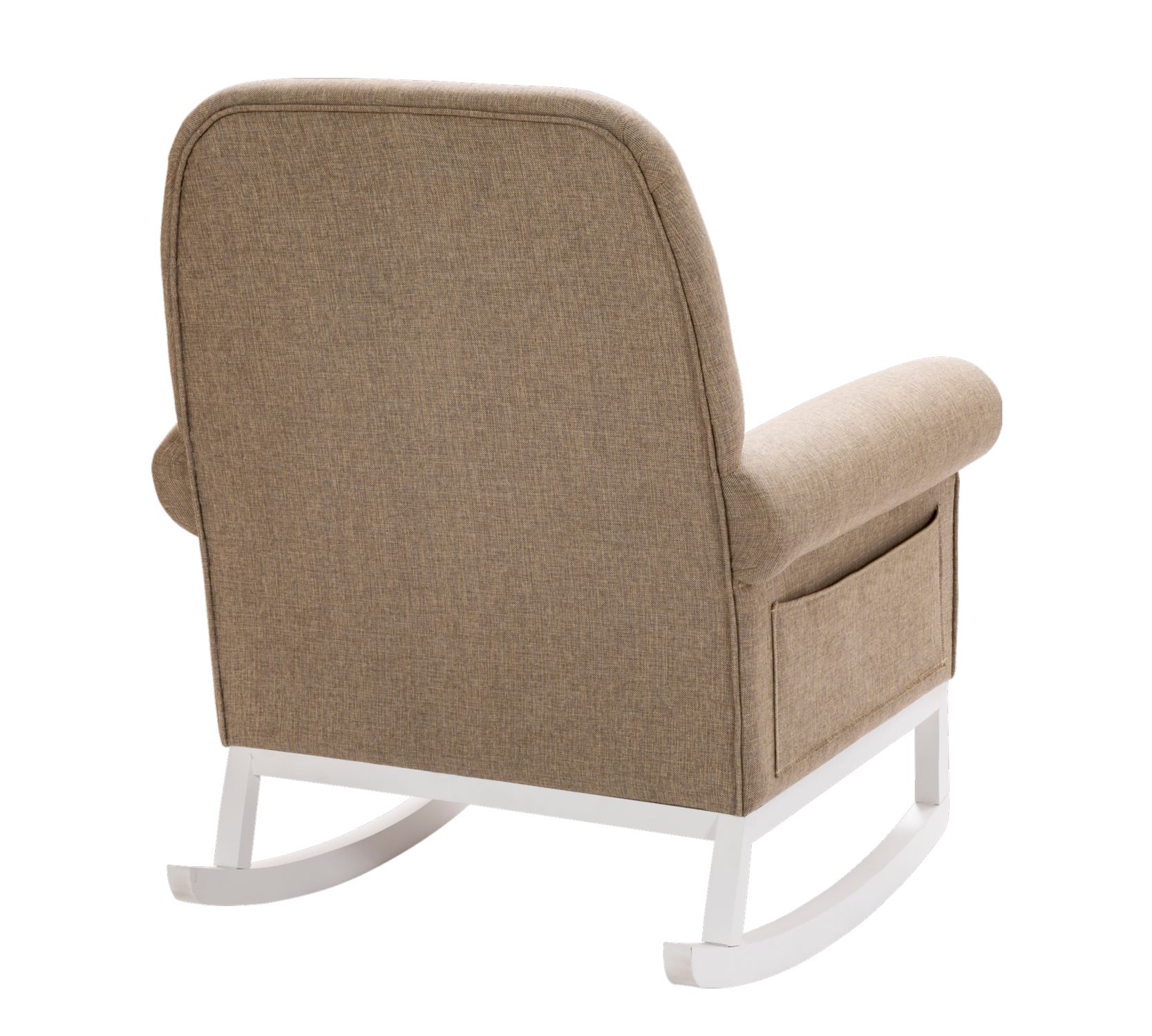 Приятные особенности:Кресло выполнено: внутренний каркас - бук; материал ножек - граб. Обивочная ткань - 100% полиэстер, наполнение кресла - поролон. Кресло - качалка сделано для отдыха мам, а так же для удобного кормления малышей (в таком положении мама не сможет заснуть во время кормления), удобные подлокотники выполнены в форме валика, что делает удобным кормление и руки мамы находятся в спокойном положении.