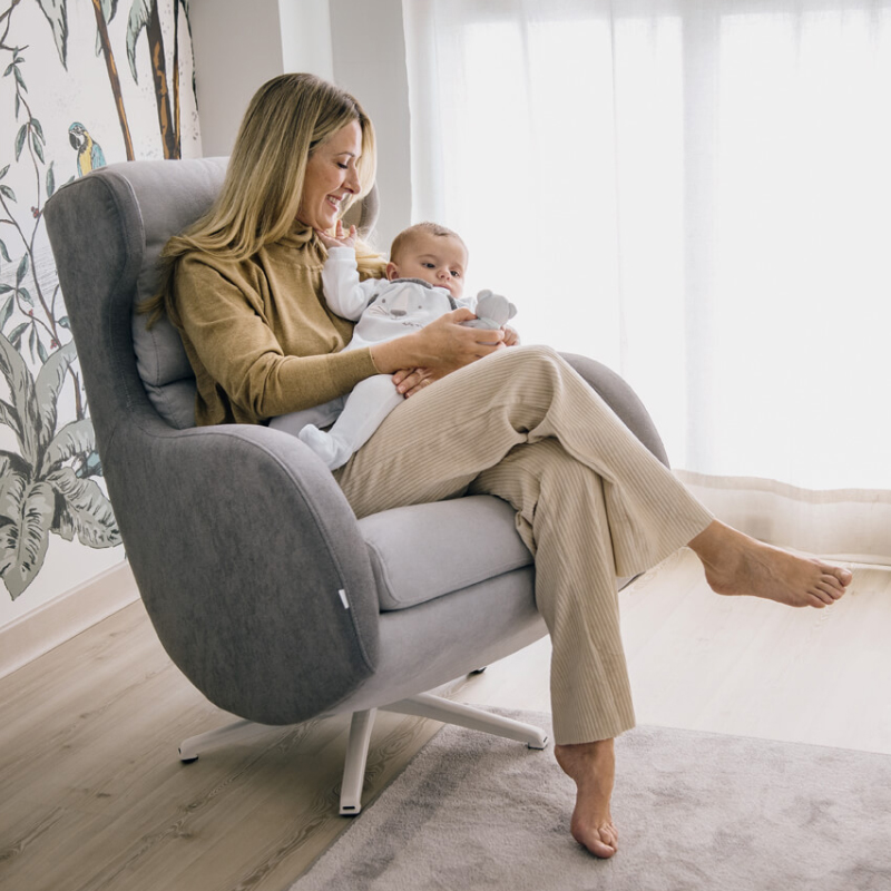 Приятные особенности:Кресло-качалка со встроенной системой укачивания и вращения.Обивка кресел-качалок Aquaclean компании Micuna защищает от вирусов и бактерий, эффективно снижая их активность и ограничивая их проникновение в ткань. Кроме того, эта ткань является большим подспорьем в борьбе с аллергией, вызываемой пылевыми клещами.