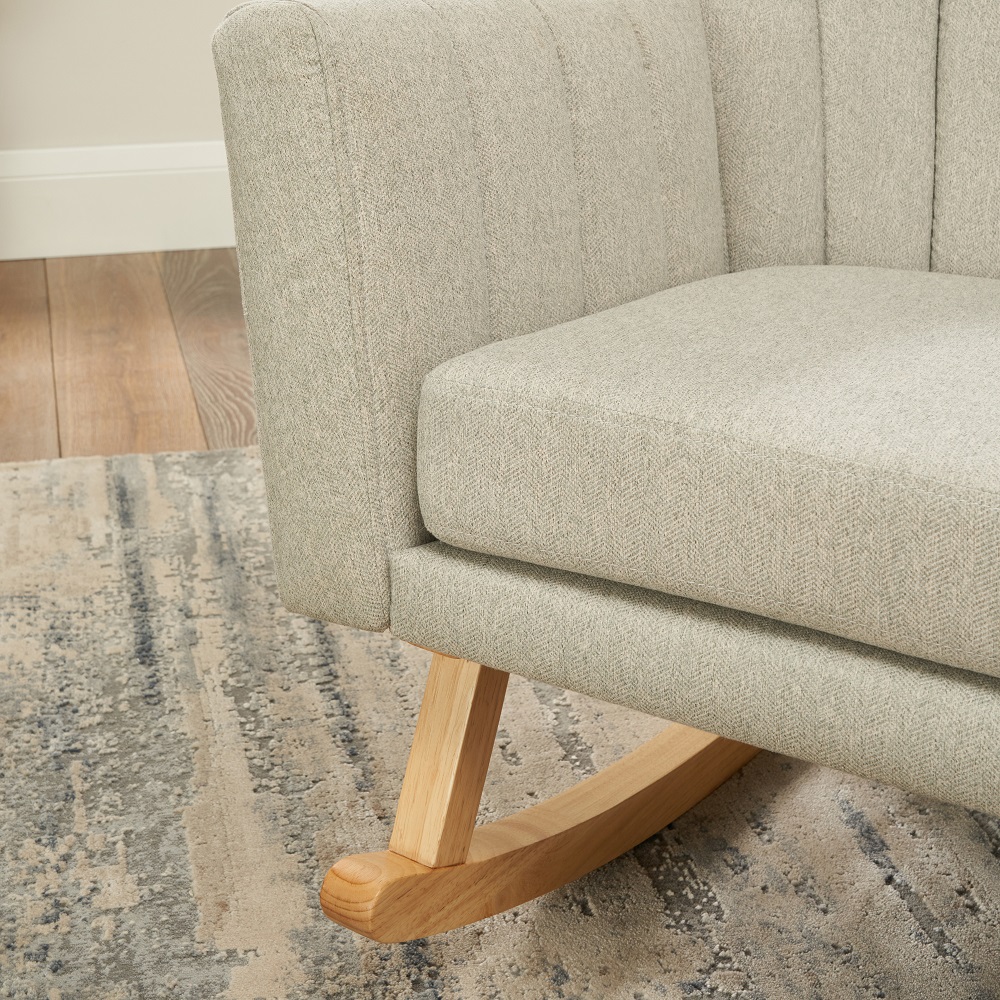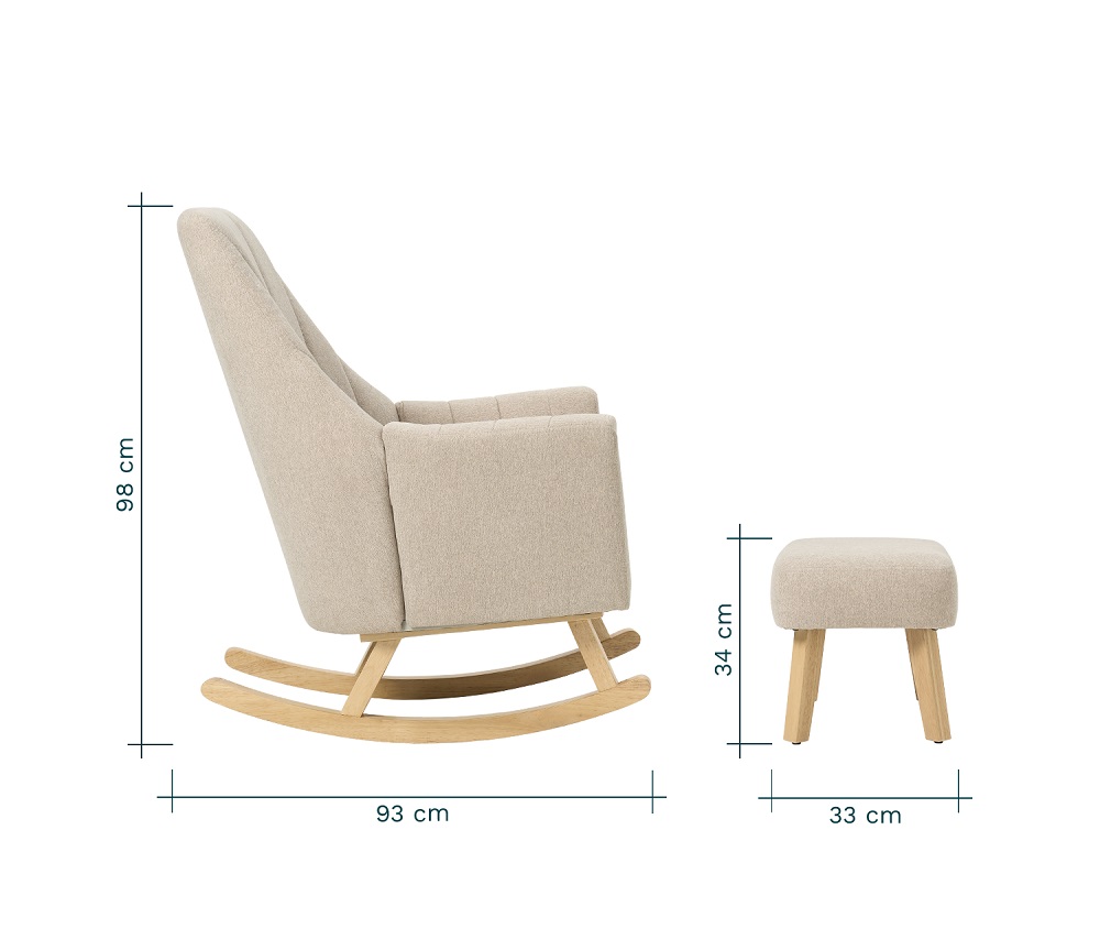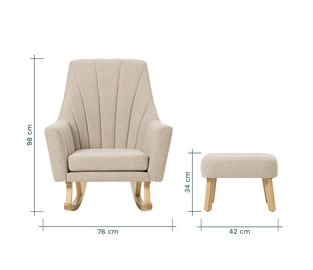 Приятные особенности:Элегантное кресло-качалка отличается эргономичным дизайном: мягкое сиденье и подлокотники поддерживают спину и руки, а ноги можно расслабить на входящем в комплект пуфе.Ножки-качалки, которые прослужат вам долгие годы, изготовлены из гибкого и прочного каучукового дерева. Внутренний каркас выполнен из цельного массива дерева, а мягкая и приятная на ощупь ткань кресла-качалки имеет влаго- и грязеотталкивающую пропитку.Стильное сочетание деревянных элементов с успокаивающей цветовой палитрой кресла-качалки Jonah впишется в интерьер любой детской комнаты и будет выглядеть актуально не один год.