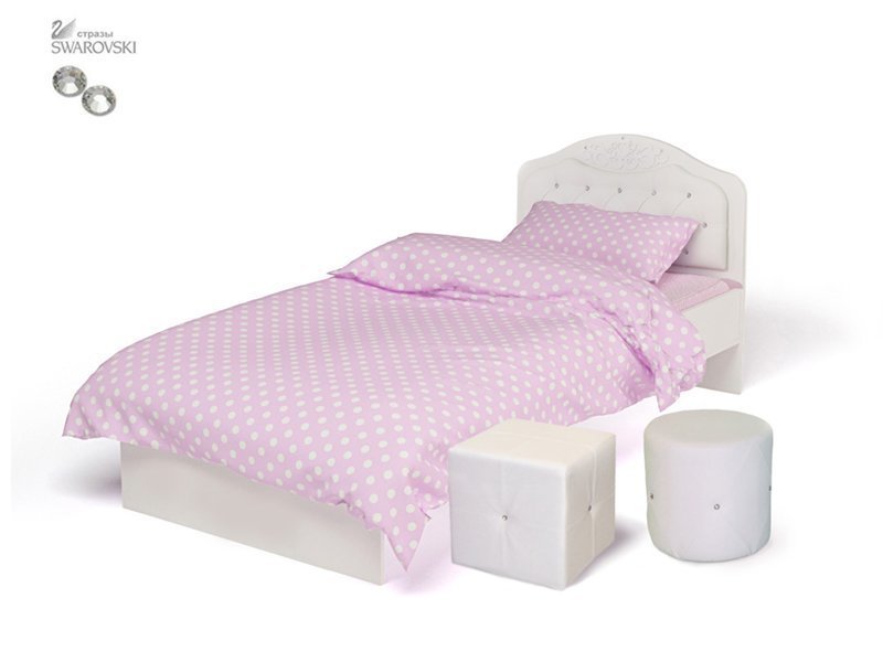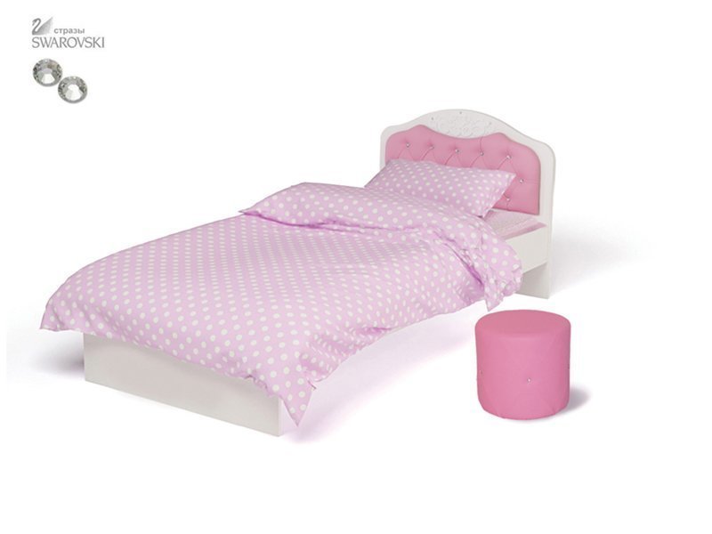 Приятные особенности детской кровати Princess № 1: кровать «Princess» со стразами Swarovski - лучший подарок, который могут сделать любящие родители своей маленькой принцессе! Изысканный дизайн - не единственное преимущество данной модели. Надежная конструкция кровати выдержит любые шалости Вашей озорной дочурки: кровать сделана из прочной сертифицированной ЛДСП толщиной 22 мм. Кроватка оснащена ортопедическим основанием (деревянные ламели на металлической раме). Выдержанная в общем стиле комнаты «Princess» кровать, тем не менее, отлично впишется в любой интерьер и станет гармоничной его частью.