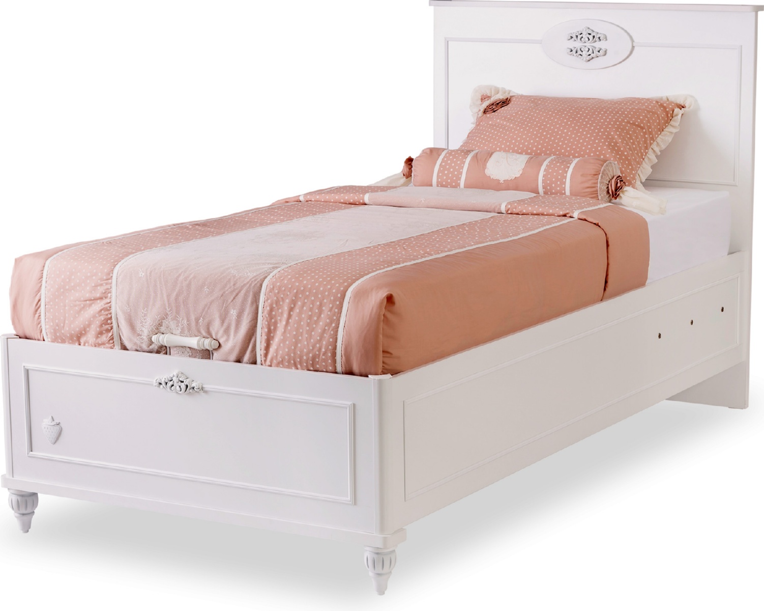 Приятные особенности:Просторная и удобная кровать с подъемным механизмом серии Cilek Romantica предназначена для обустройства спальной комнаты. Достойно украсит внутреннюю обстановку в светлых тонах и прослужит долгие годы. Благодаря оснащенному механизму с подъемом, спальное место легко поднять и аккуратно сложить подушки, одеяла, а также спальные принадлежности. Все детали изделия изготовлены из прочного и качественного ЛДСП, отличающемся стойкостью к истиранию, долговечностью. Роскошная кровать придаст обстановке благородный оттенок, сэкономит полезный объем комнаты для игр и развлечений. Предназначена устройства в утонченном стиле спальни мечтательной девочки-подростка. Здесь очень сладко и комфортно отдохнуть после активного дня и будут сниться только добрые и волшебные сны.