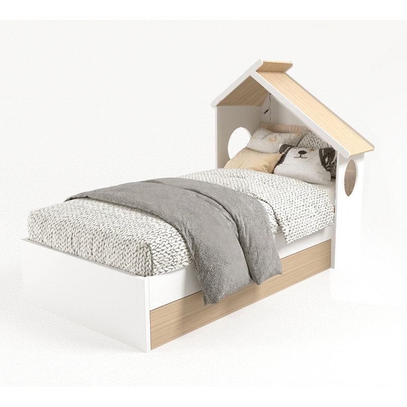 Приятные особенности: Кровать-домик выполнена из ЛДСП EGGER. Кромка немецкая DOLLKEN закрыта со всех сторон каждой детали. Петли дверей с доводчиками. Ящики модулей с доводчиками скрытого монтажа. Фасады мебели покрыты меламиновым покрытием.Размеры: