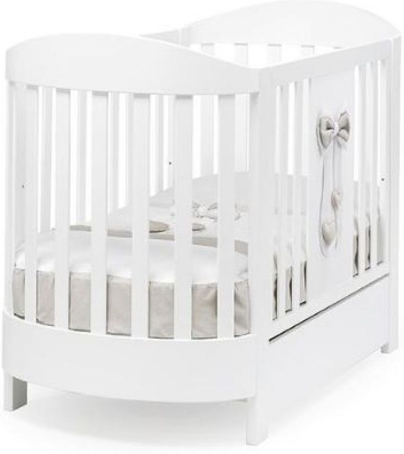 Приятные особенности:милая, компактная кроватка для новорожденных овальной формы с закругленными боковыми стеночками. Габариты спального места составляют 128х60 см. Матрас соответствующего размера входит в комплект. Кровать легко перемещать по комнате благодаря встроенным колесикам. Их прорезиненные накладки не царапают напольное покрытие, едут тихо и бесшумно. А стопоры помогут зафиксировать ее на одном месте. Боковые реечные стенки опускаются с 2-х сторон для удобства доступа и ухода за малюткой. Одну из боковин в дальнейшем можно снять, если малыш уже достаточно самостоятельный, чтобы ложиться и вставать без помощи взрослых. Ложе имеет реечное ортопедическое основание и регулируется в 2-х позициях по высоте в зависимости от возраста ребенка.