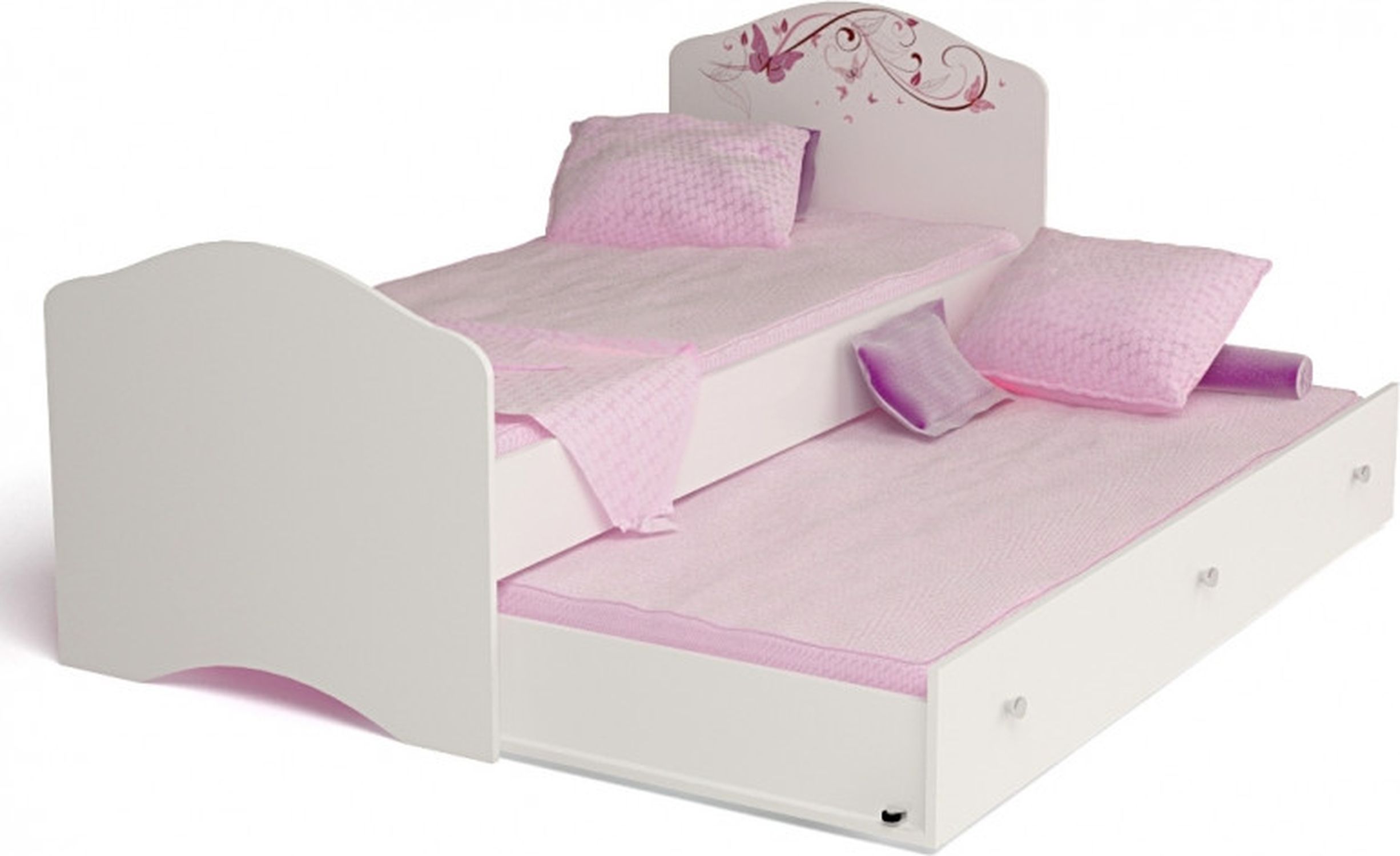 Приятные особенности :Детская кровать ABC King Фея с рисунком без стразвыполнена в общем стиле комнаты, стильная и практичная модель детской мебели, которая не только наполнит помещение нежностью и теплом, но и обеспечит маленьким феям крепкий и здоровый сон. Обладает ортопедическим основанием на металлической раме, деревянные ламели можно регулировать на нужную высоту. ЛДСП имеет толщину 22 мм - очень прочный и надежный. Под спальное место можно вмонтировать дополнительное выдвижное ложе для второго ребенка (приобретается отдельно)