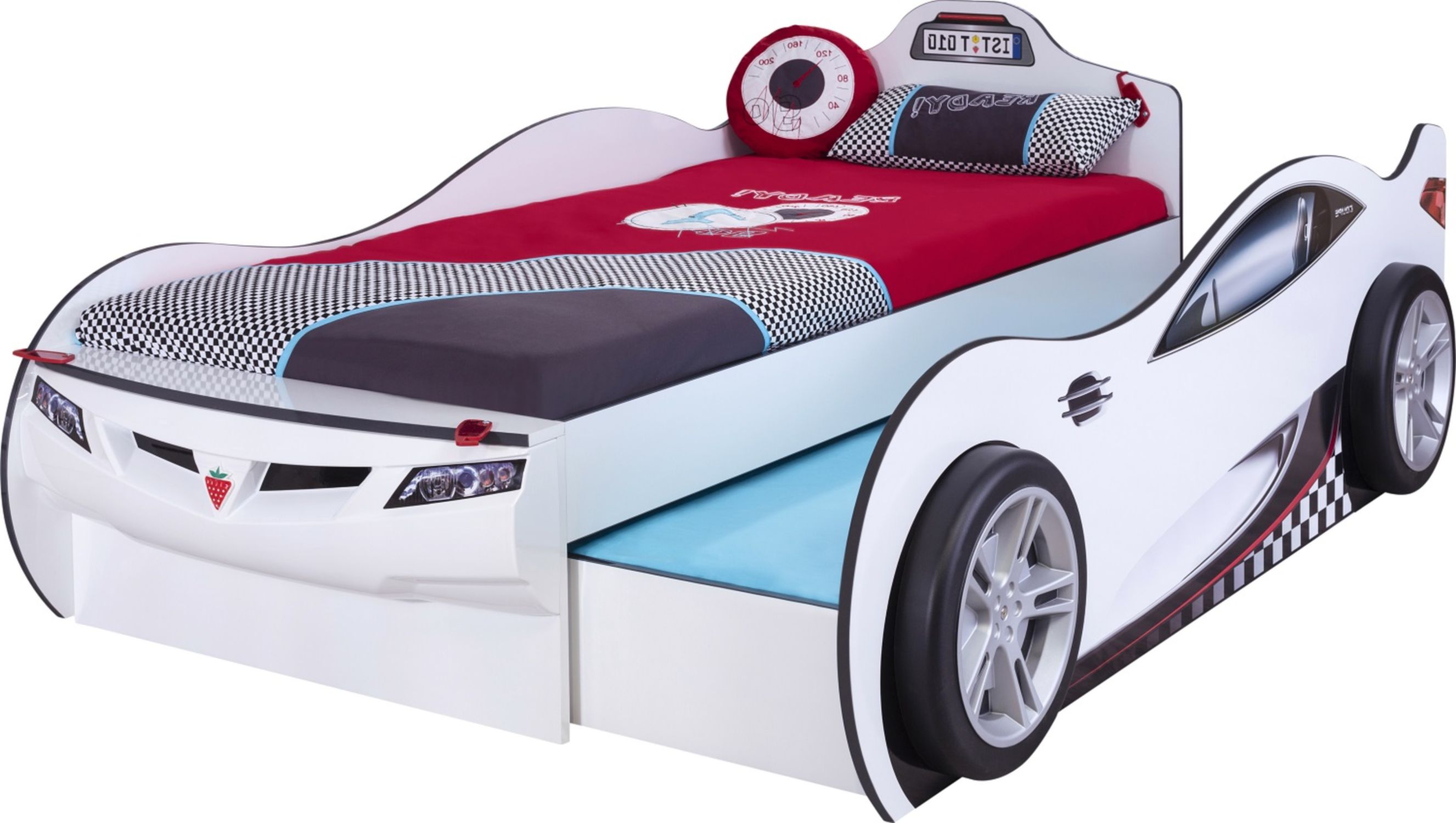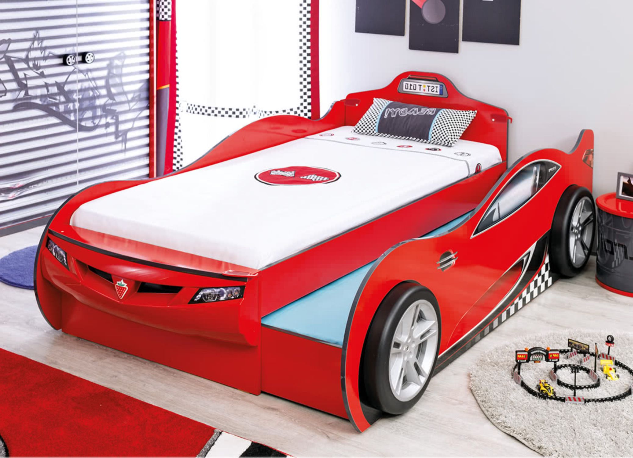 Приятные особенности:Детская кровать в виде машины станет настоящим украшением комнаты. Она гарантированно понравится ребенку, модель подойдет не только для сна, но и будет выполнять роль любимого места для игр. Модель отличается ярким дизайном, ее поверхность выполнена в виде спорткара. Внешнее оформление нанесено способом фотопечати и устойчиво к тем или иным воздействиям.