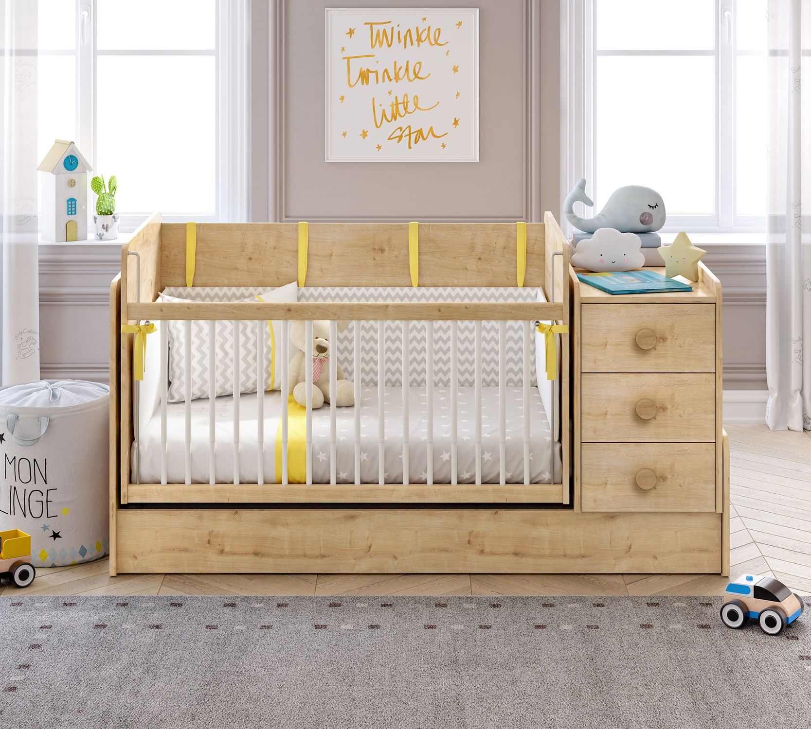 Приятные особенности:Чтобы обеспечить новорожденному крохе комфортный и безопасный отдых с первых дней жизни, родителям достаточно приобрести кроватку трансформер Mocha Baby турецкого производителя Cilek. Отличительными чертами представленной модели являются стильный дизайн в светлом оттенке натуральной древесины, продуманная конструкция с возможностью дальнейшего превращению детской кроватки в подростковую кровать, добротное качество сборки и безопасность материалов.Спальное место станет более просторным и кровать превратится в подростковый вариант.