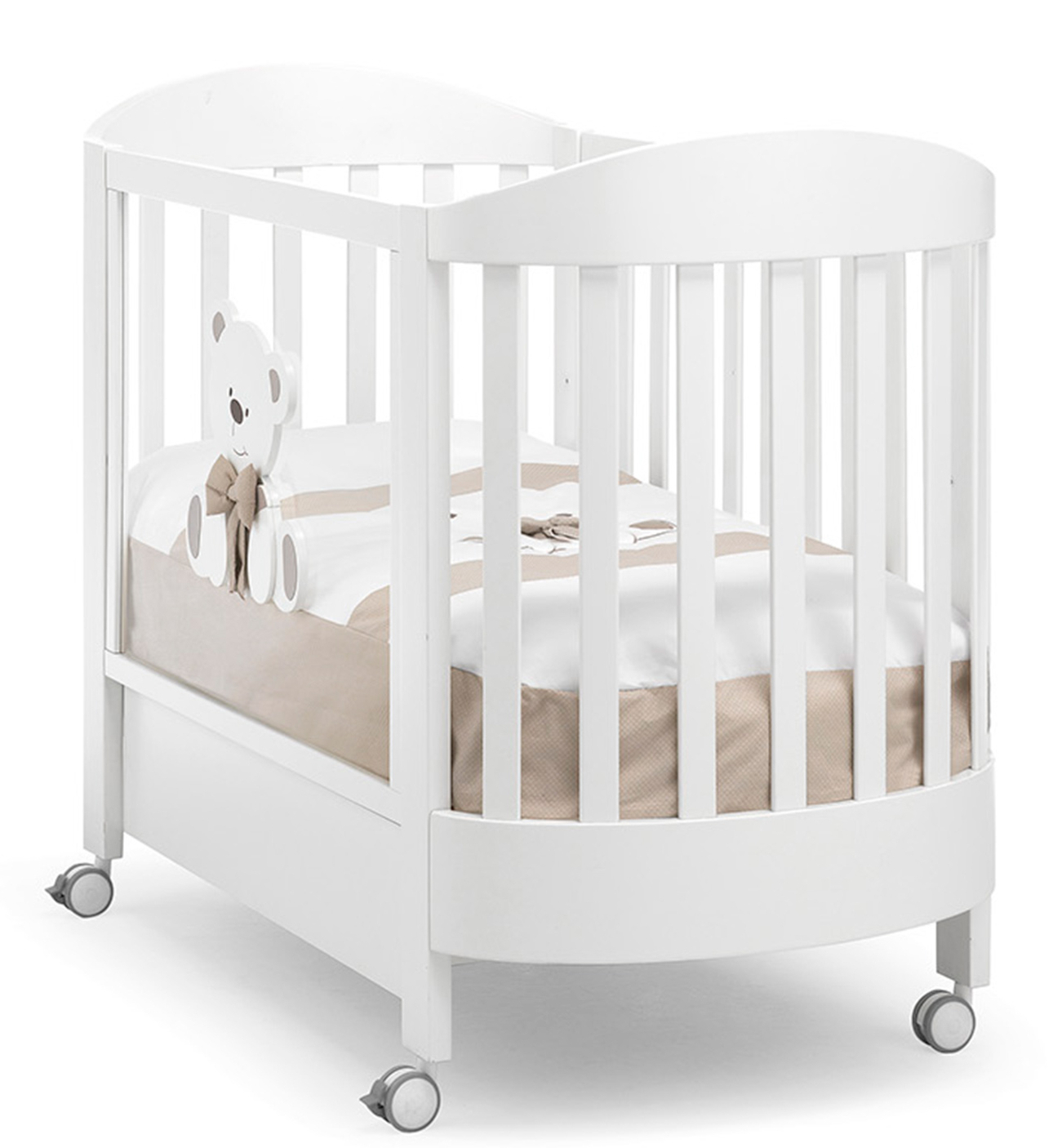 Приятные особенности: Кроватка Erbesi Tato Ovaleвыполнена в классическом стиле с красивой аппликацией. Безусловным плюсом является возможность использования в виде полноценного, удобного диванчика, стоит лишь убрать одну из боковин.Чтобы опустить сторону, вы должны взять ее рукой в центре верхней части, поднять ее и сразу же подтолкнуть нижнюю часть стороны к кровати ногой, и в этот момент вы можете опустить боковину.Чтобы поднять боковую направляющую, вы должны подтолкнуть нижнюю часть боковой стороны к кровати ногой, а затем вы можете подтягивать ее до тех пор, пока не услышите щелчок и она зафиксируется в верхнем положении.Одна боковая спинка в дальнейшем снимается. Подматрасник кровати выполнен в виде сплошного основания из неокрашенного бука и устанавливается в двух положениях по высоте. Бот имеют специальное, натуральное покрытие.