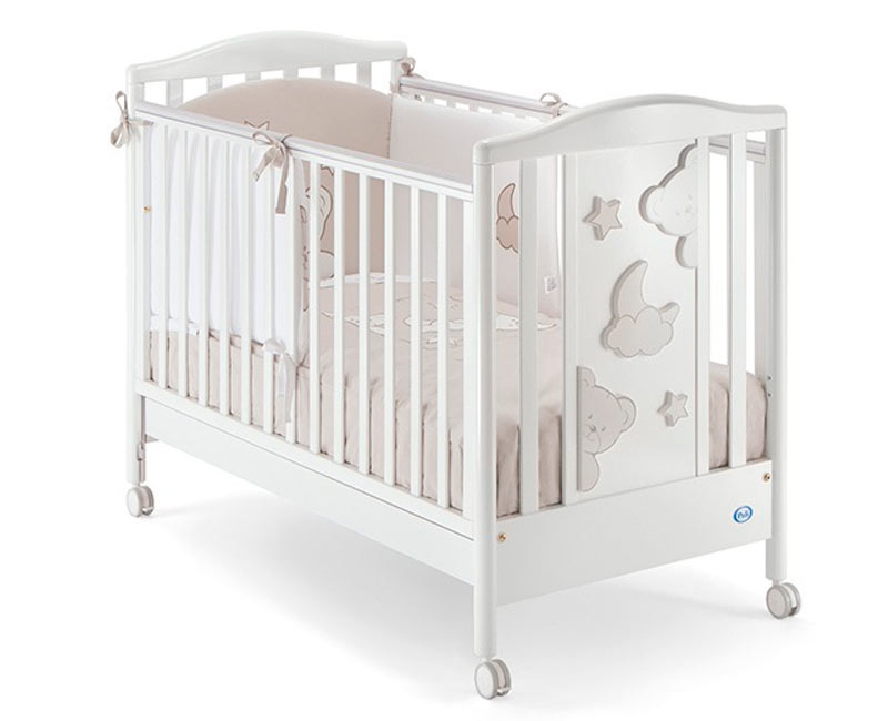 Приятные особенности: Pali Georgia (Джорджия) недорогая стильная модель. Кроватку характеризуют современный стиль, отсутствие углов и плавность очертаний. Торцовая спинка украшена рисунком. Принадлежит коллекции Georgia. Изготовлена из древесины бука, покрыта красками из натуральных компонентов и нетоксичными лаками. Имеет внутренний размер 125*65 см. и подходит для детей от 0 до 5 лет. Наружный размер 133*72 см.Pali Georgia оборудована запатентованым механизмом опускания боковин, который позволяет бесшумно одной рукой опускать и поднимать обе боковины. При этом исключена возможность ребенку самому это сделать. На верхней части боковин установлены силиконовые накладки для зубов. Подматрасник кровати выполнен в виде ортопедической сетки из неокрашенного бука и устанавливается в двух положениях по высоте. Верхний уровень - на расстоянии 48 см. от поднятой боковины, нижний - 64 см. Колеса покрыты резиновыми накладками , два колеса оборудованы блокирующим тормозом. Имеется выдвижной ящик, разделенный на две секции, выполненный из ламинированных панелей. Кровать продается без матраса.
