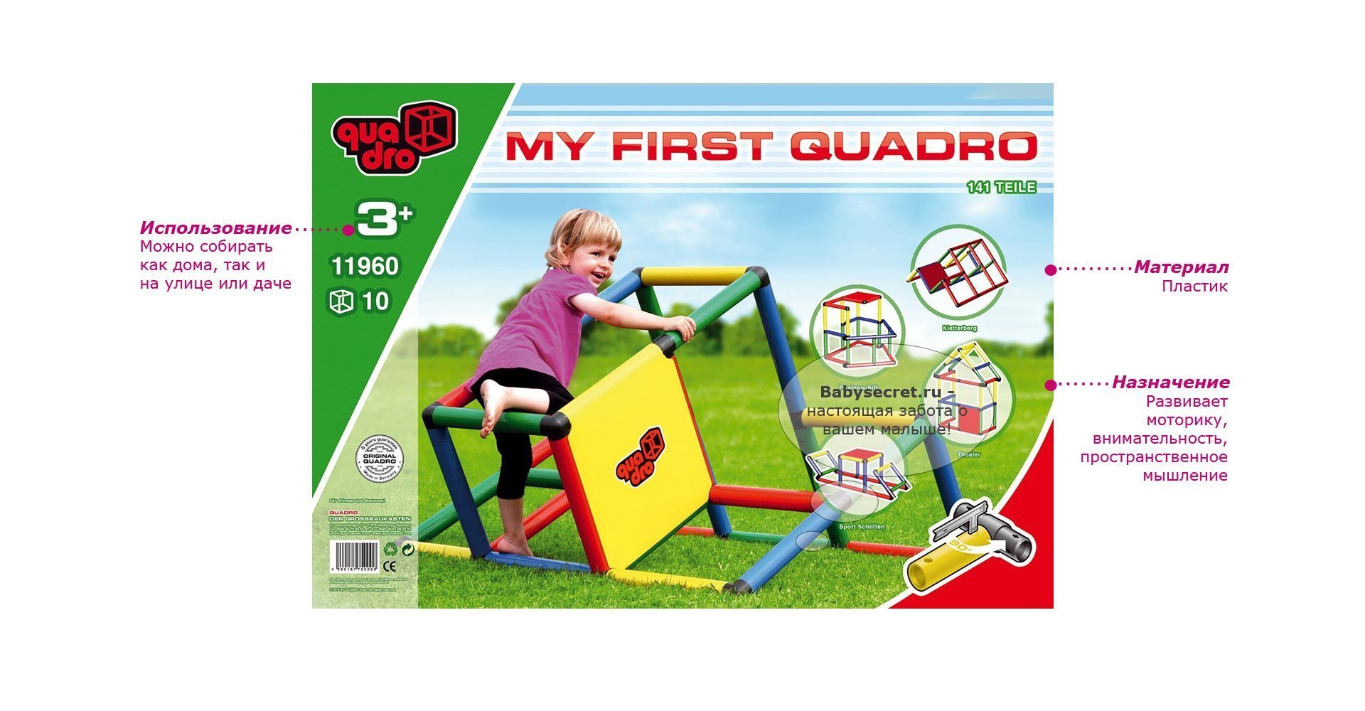 Приятные особенности крупногабаритного конструктора Quadro My first 141 деталь 11960:помните, как в детстве вы, собирая конструктор, мечтали, чтобы машина, дом или робот, которых вы создали, вдруг выросли до размеров своих реальных аналогов, а вы превратились в полноправных владельцев своих творений? Сегодня вашему ребёнку не придётся об этом беспочвенно мечтать. Подарите ему крупногабаритный конструктор "My first Quadro" и вы удивитесь, насколько интересен, уникален и пытлив детский ум. Имея в распоряжении 141 деталь, ребёнок без труда сможет собрать собственный дом, самолёт, автомобиль, подводную лодку или сконструировать свои театральные подмостки. Детали конструктора легко крепятся друг к другу и абсолютно безопасны для детей. Конструктор Quadro можно использовать как в помещении, так и на улице круглый год!