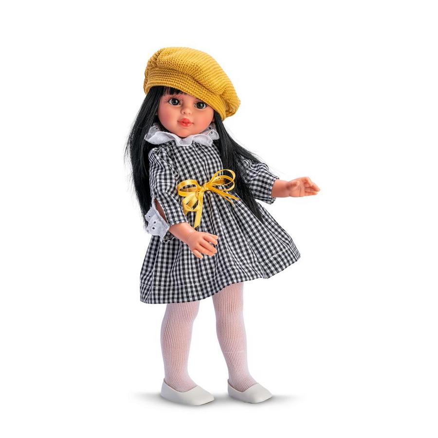 Приятные особенности: Куколка Сабрина-невероятная красотка, в которую влюбляешься с первого взгляда! Послужит прекрасным и запоминающимся подарком на любой праздник для девочек всех возрастов. Рост куколки 40 см, выполнена из премиального гипоаллергенного винила Soft-touch. Густые волосы приближены к натуральным, густо прошиты по всей голове. Можно мыть с шампунем, расчесывать и делать различные прически. Очень красивое выразительное личико, большие карие глазки, пушистые реснички, пухлые губки и аккуратный носик. Отдельное внимание стоит уделить комплектам. Наряды ASI выше всяких похвал! Выполнены из высококачественных материалов от ведущих испанских кукольных дизайнеров. Одета Сабрина в красивый комплект: клетчатое платье декорированное атласной лентой и рюшами, стильный вязаный берет, колготки, балетки из эко-кожи. Упаковка- фирменная подарочная коробка ASI.