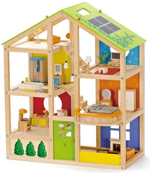 Приятные особенности:Кукольный дом (с мебелью) - это красиво оформленный кукольный домик, который непременно подарит ребенку бесконечное вдохновение для ролевых игр, будет развивать воображения, моделирование различных домашних ситуаций кукольной семьи. Благодаря реверсивной крыше на солнечных панелях ваш ребенок может играть круглый год, меняя ее на летнюю и зимнюю стороны.В кукольном домике шесть комплектов мебели для кукол. Семья кукол может читать книги в уютном чердаке, отдыхать в главной спальне, убирать в семейной ванной комнате, развлекаться в медиа-комнате, готовить еду на кухне и проводить время в гостиной.Кукольный домик может вдохновить на творчество ребенка, поскольку в нем есть движущиеся части, позволяющие вашему ребенку обустроить и украсить дом так, как ему нравится.Дом прослужит семье несколько лет, он долговечен благодаря прочной деревянной конструкции из экологически чистых лесов. Важно, что он закончен с яркой детской безопасной краской.Кукольный семейный дом пробуждает воображение и креативность, поощряет подражательную и воображаемую игру и способствует рассказу сказок.Дом формирует в ребенке ценные социальные навыки, такие как общение, сотрудничество, поощряет доверие, дружбу и общение.