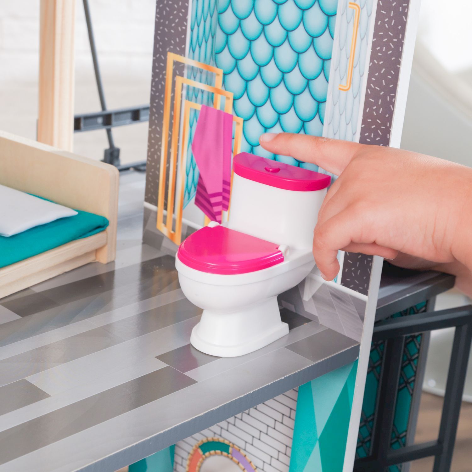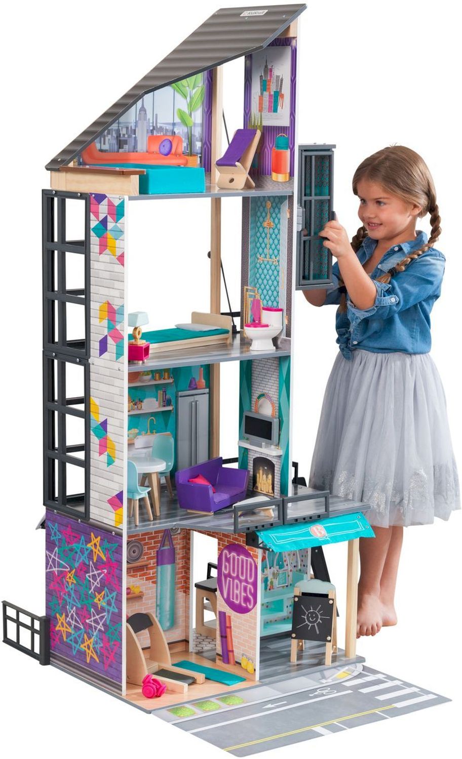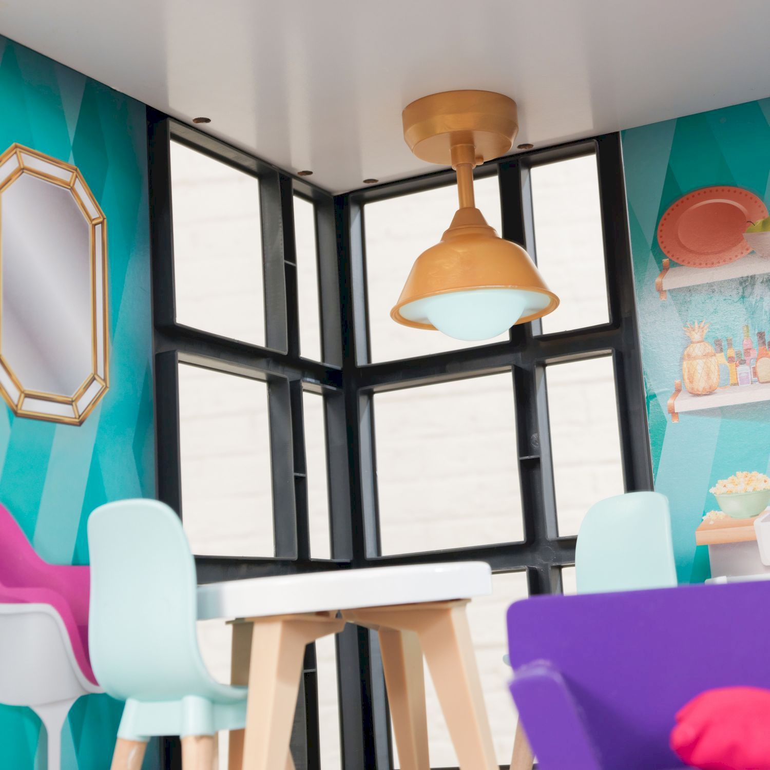 Приятные особенности :Место, где куклы могут жить, работать и играть - этот четырехэтажный кукольный домик Бьянка в стиле небоскреба. Дом в стиле лофт, оформленный с использованием ярких цветов и графических фонов, обладает энергичной атмосферой, которая готовит детей к приключениям. Посетите уличный бутик, кафе, тренажерный зал или салон для домашних животных. Интерактивные функции, такие как светильники, подвижная лестница, лифт и миниатюрная рамка для фотографий, удерживающая изображение, помогают полностью погрузиться в игру.