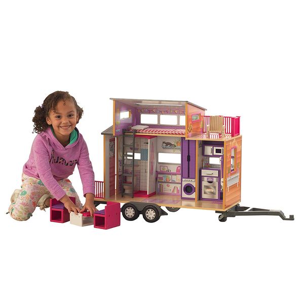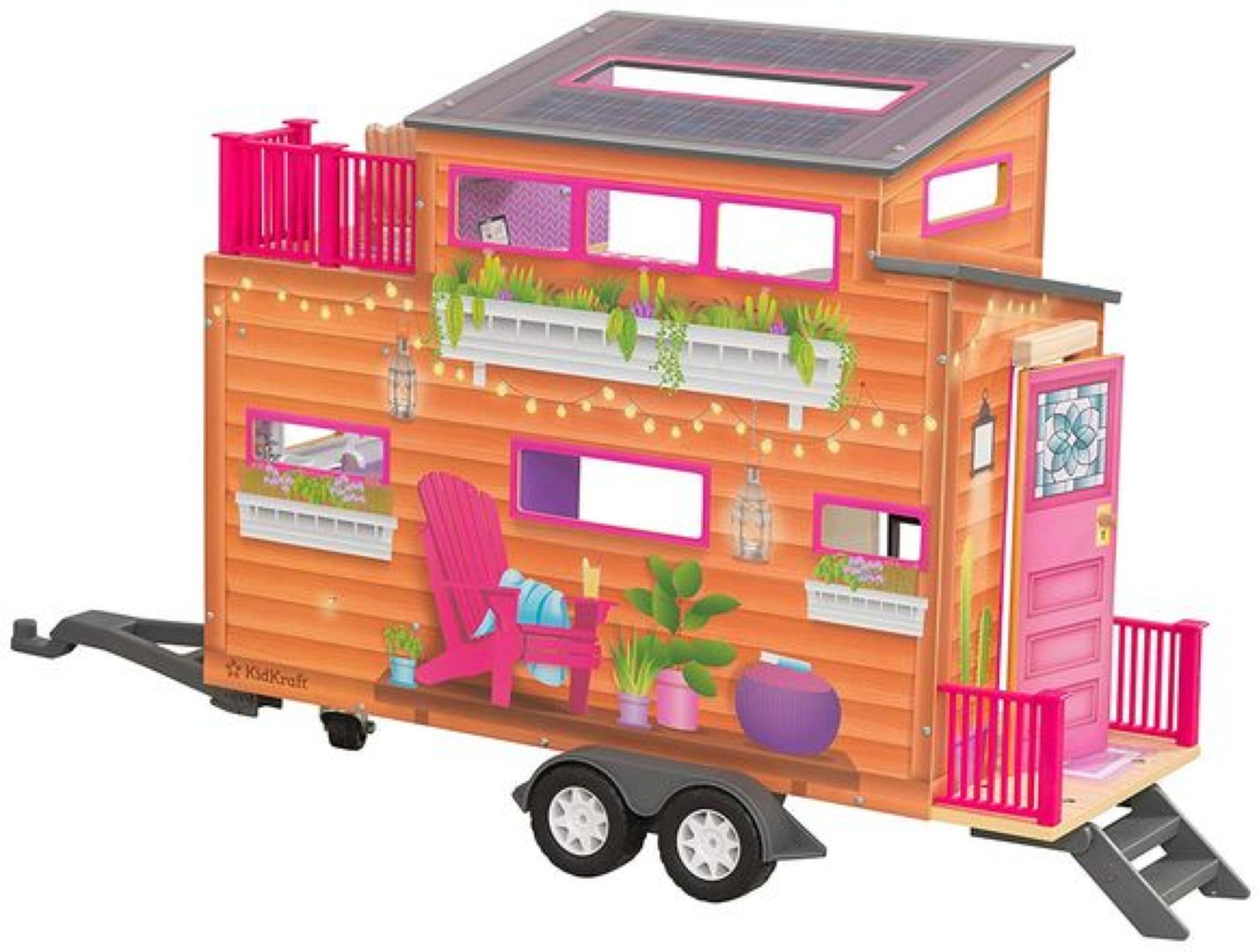 В комплекте много разнообразной мебели и аксессуаров, среди которых подвижные элементы (складной стол)