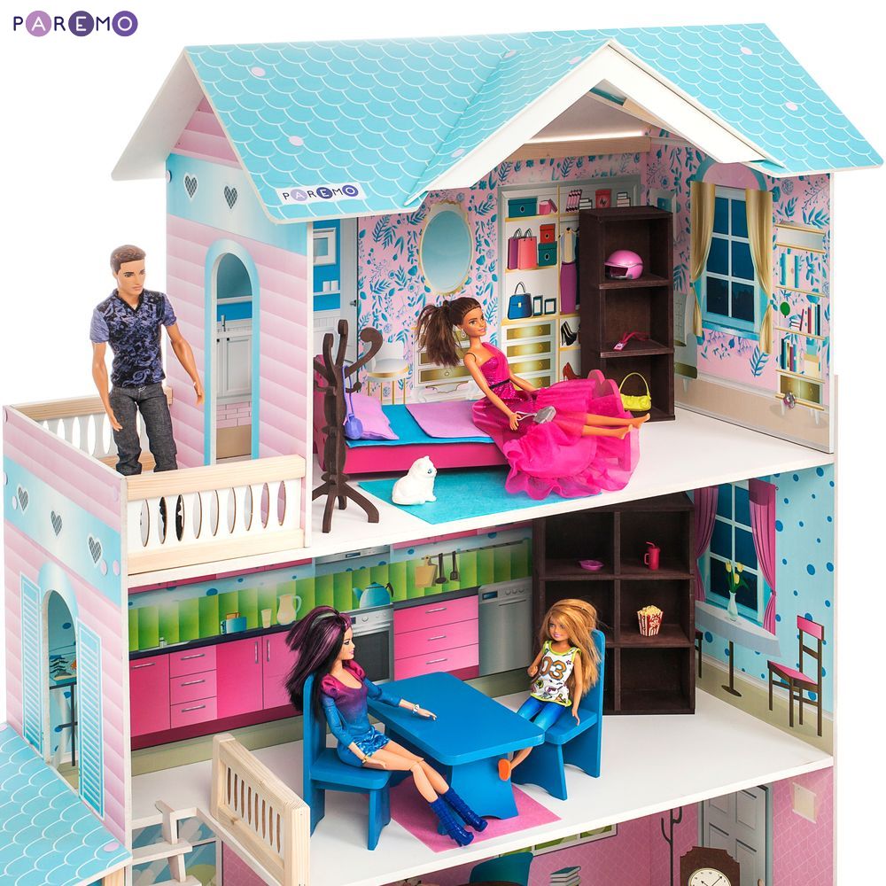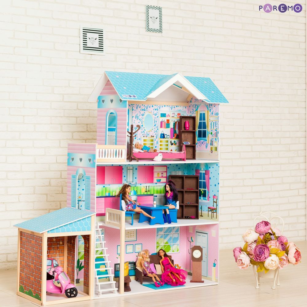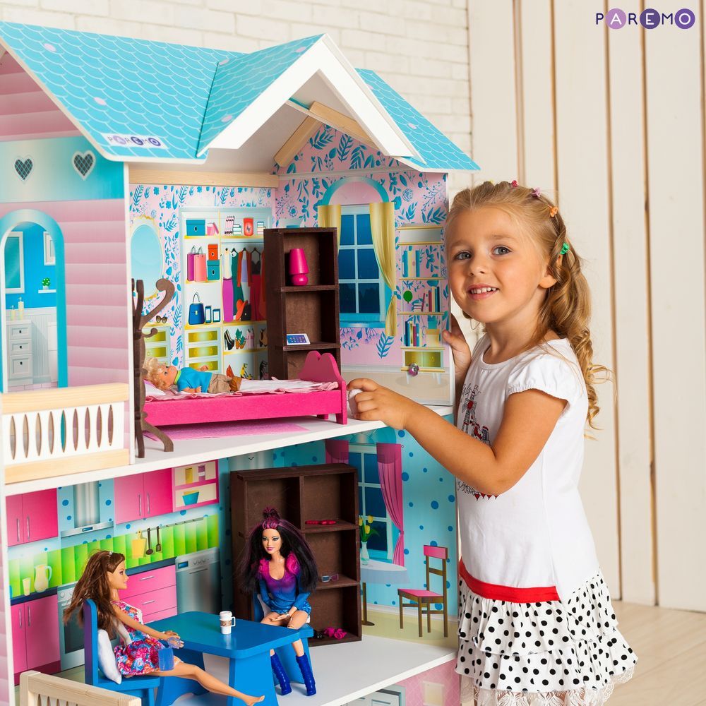 Приятные особенности интерактивного дома "Беатрис Гранд" (с мебелью, свет, звук): Для декорирования интерьеров используется инновационная технология нанесения рисунка на дерево, благодаря чему декор дома более устойчив к выцветанию и механическим повреждениям во время игры, чем стандартная технология наклеенного и ламинированного бумажного декора. Домик, выполненн в современном стиле, в нежно голубом цвете, благодаря которому домик кажется легким и воздушным. Игрушку отличает нежный, пастельный принт по дереву внутри дома с акцентом на нежно розовый цвет, не одна девочка не останется равнодушной к данному подарку.