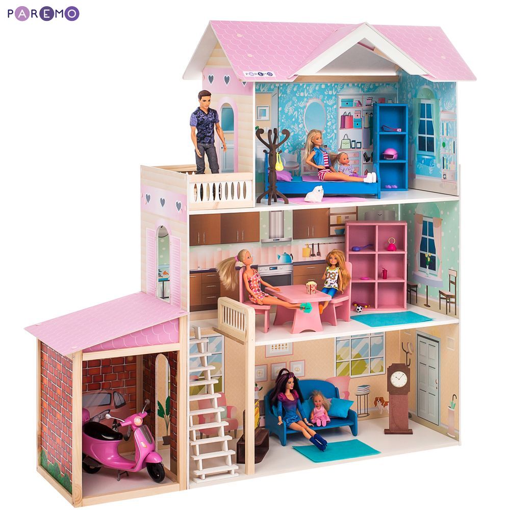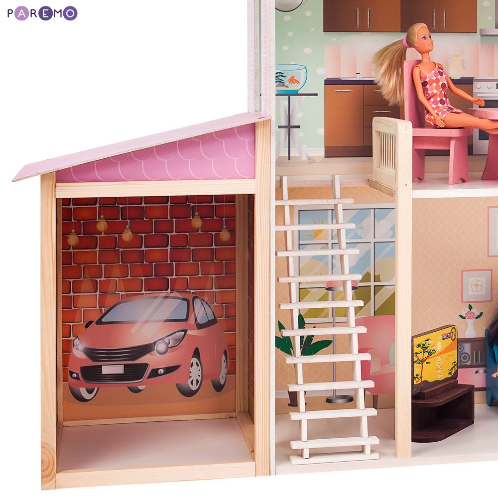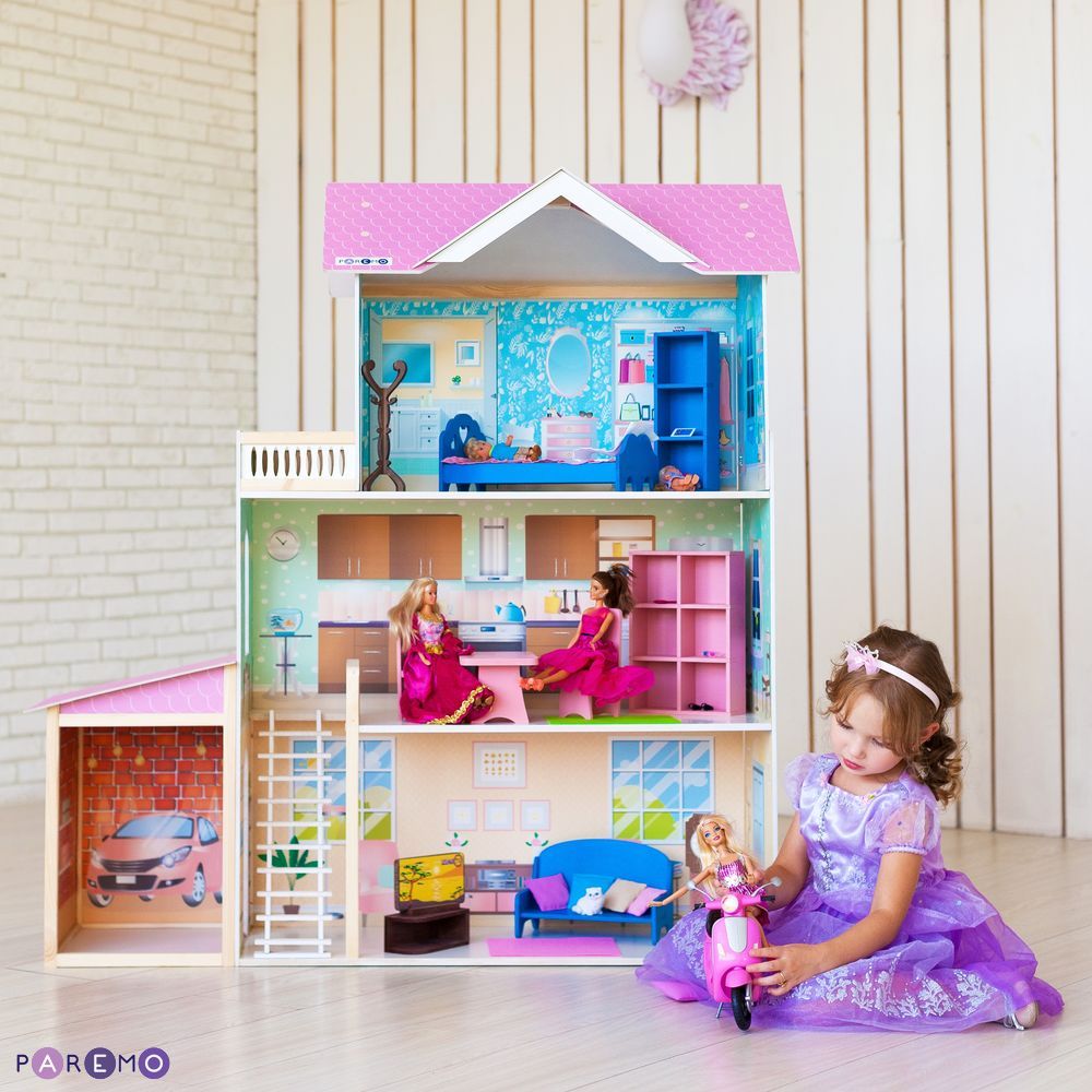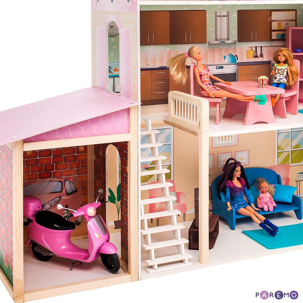 Приятные особенности интерактивного дома "Розали Гранд" (с мебелью): Для декорирования интерьеров используется инновационная технология нанесения рисунка на дерево, благодаря чему декор дома более устойчив к выцветанию и механическим повреждениям во время игры, чем стандартная технология наклеенного и ламинированного бумажного декора. Домик, выполненн в современном стиле, в нежно розовом цвете, благодаря которому домик кажется воздушным. Игрушку отличает нежный, пастельный принт по дереву внутри дома с акцентом на нежно голубой цвет, который отлично сочетается с девичьим розовым, не одна девочка не останется равнодушной к данному подарку.