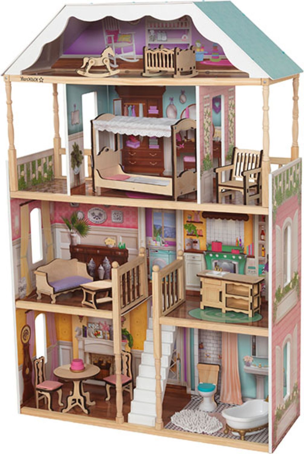 Приятные особенности :KidKraft «Шарллота» — современный кукольный домик сделает досуг девочек намного интереснее, так как малышки поселят любимых куколок в красивом особняке с 4 этажами. Каждая комната дополнена красочными обоями, а также имитациями окошек, картин и других декоративных аксессуаров. Задняя стенка домика глухая, а на лицевой стороне все комнаты доступны для игры, поэтому конструкцию можно поставить к стене. В процессе игры ребенок сможет развить свое воображение, фантазию, образное мышление, потренирует мелкую моторику рук и координацию движений, сможет проявить чувство вкуса и стиля.