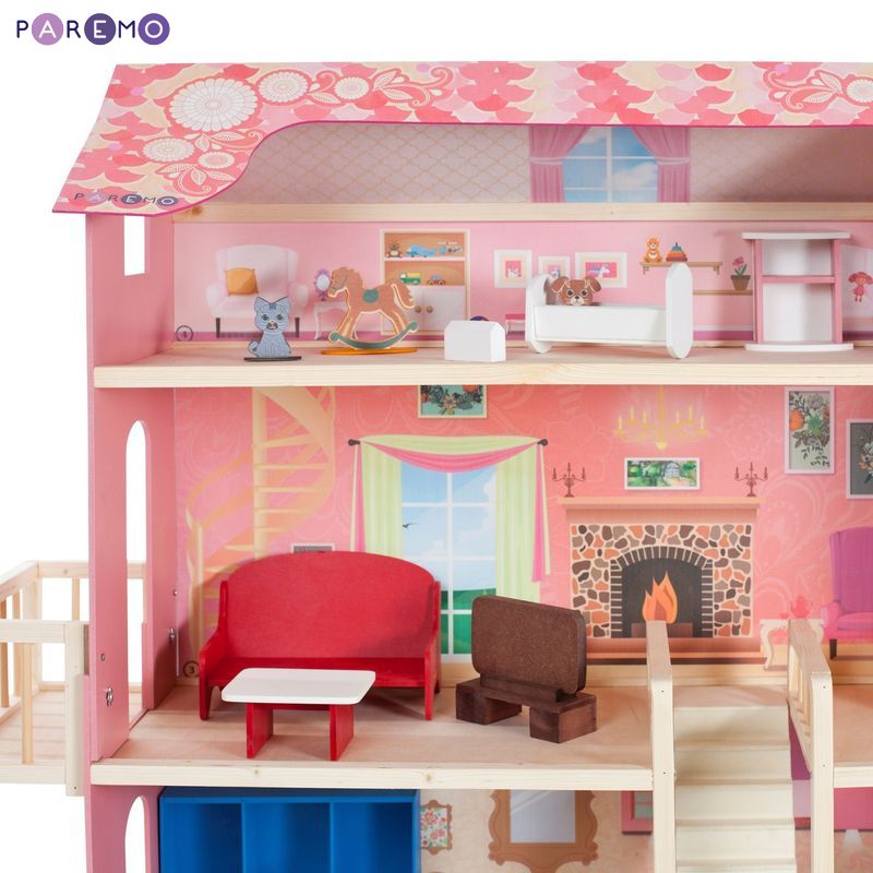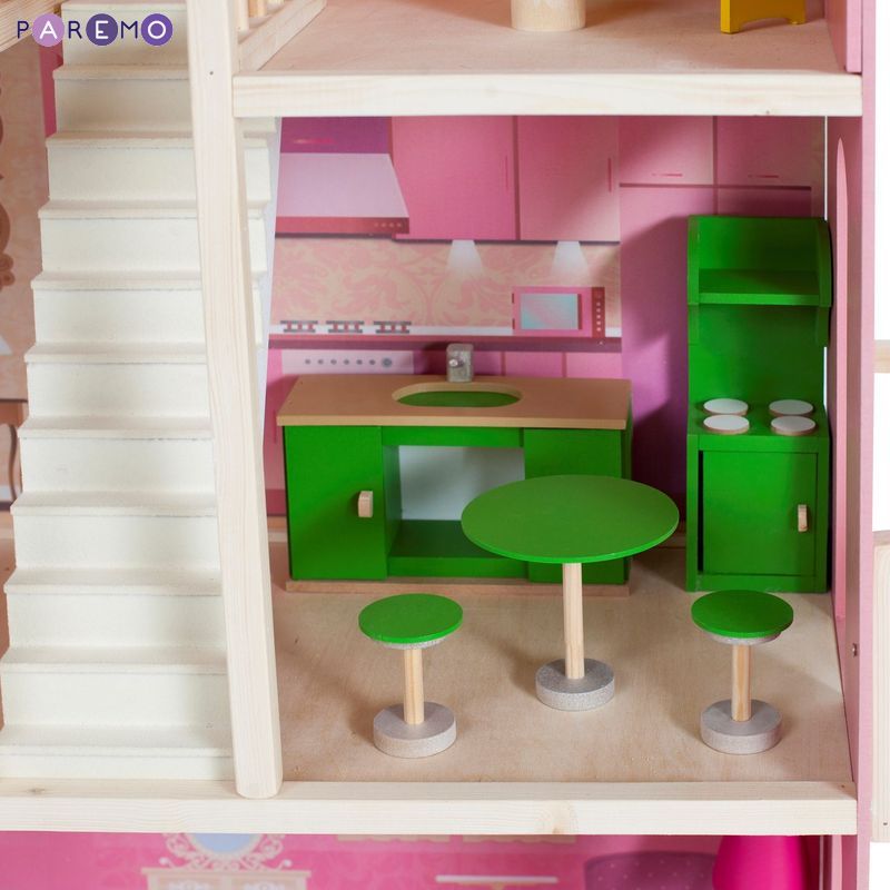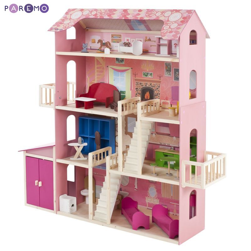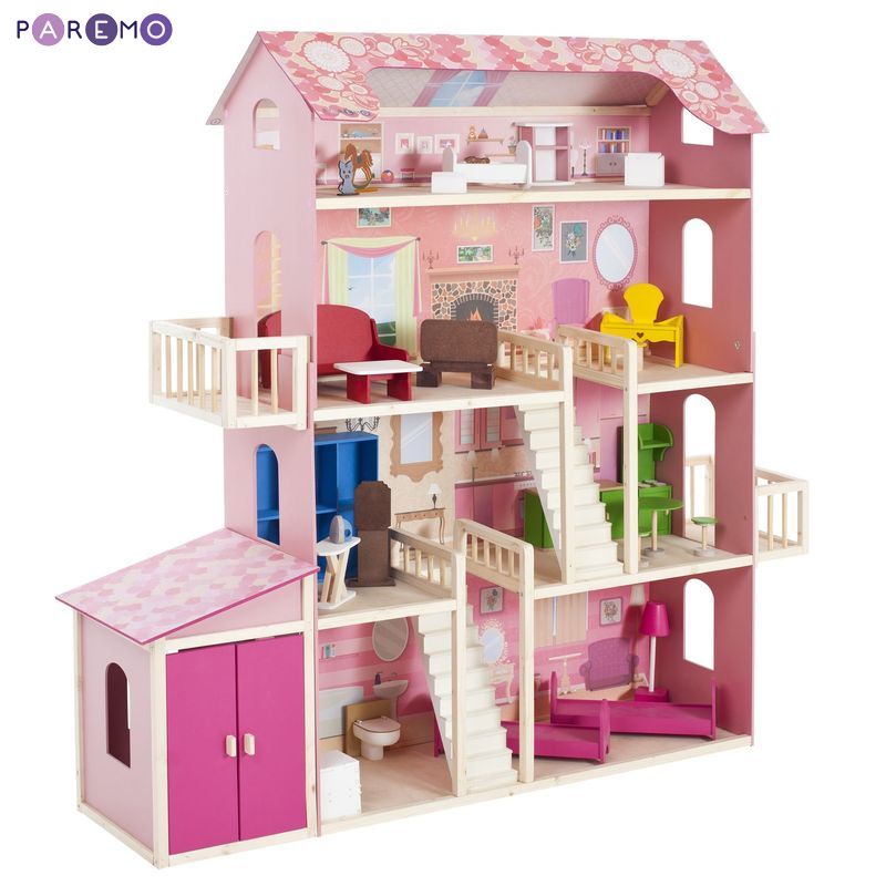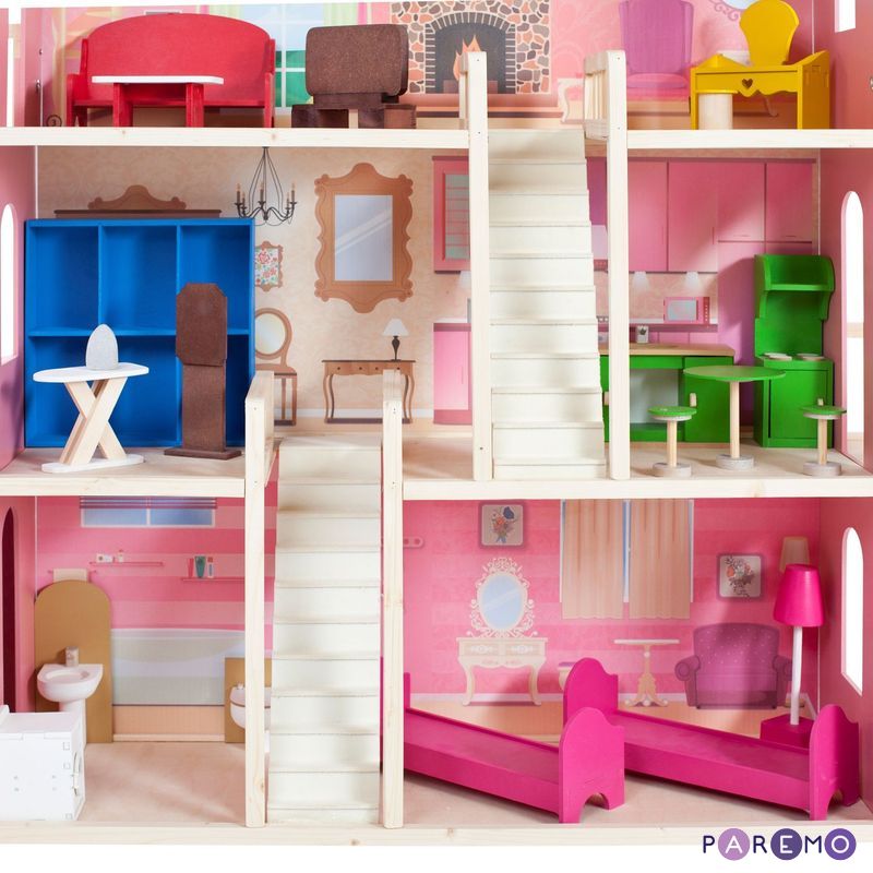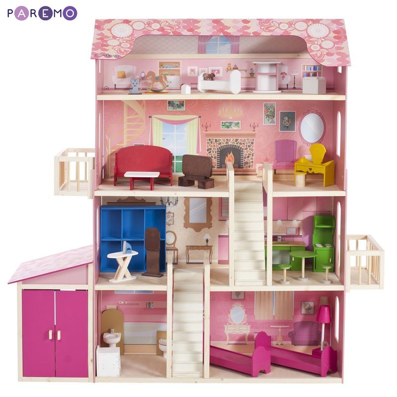 Приятные особенности: Внимание! Рестайлинг 2018 года! Яркий и функциональный 4-этажный дом для Барби оснащен всем самым необходимым для увлекательной и развивающей игры! Теперь не нужно обклеивать игрушку наклейками, весь декор (красочный и объемный) уже нанесен на древесину. К лассическое для девичьей игрушки цветовое решение придает весьма габаритной игрушке визуальную легкость и воздушность. Впечатляющая комплектация аксессуарами (28 предметов мебели), 4 этажа, флокированные лестницы, 2 балкона и вместительный гараж создают идеальное игровое пространство даже если в игре участвует несколько детей.