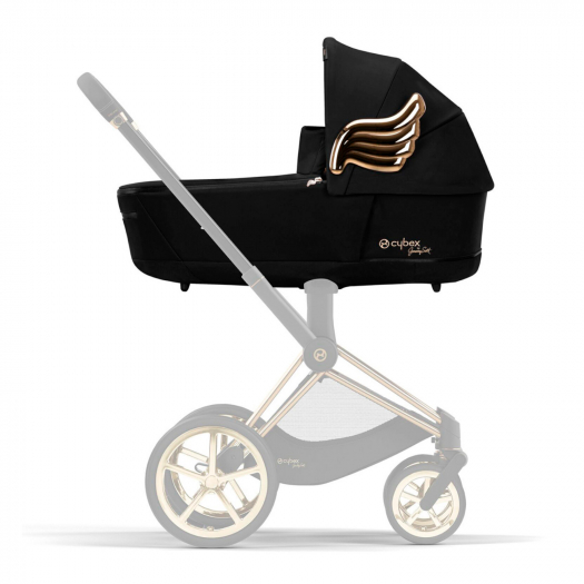 Приятные особенности:Люлька Cybex Priam IV Jeremy Scott Wingsявляется капсульной коллекцией JS WINGS. Коронные золотые крылья ярко выделяются на фоне классического черного цвета коллекции. Путешествия по всему миру, поездки по магазинам или встречи с друзьями в местных модных заведениях – все это легко осуществимо с творениями CYBEX и Джереми Скотта.Коляска Priam является бриллиантом платиновой коллекции CYBEX. Это означает, что одна рама может использоваться в трех вариациях: как система для путешествий вместе с люлькой, с удостоенной премии автолюлькой Cloud Q, как люксовая коляска.Шасси коллекции PRIAM от Джереми Скотта выполнено в элегантном золотом цвете с колесами trekking с блестящими золотыми спицами и, конечно, с коронными золотыми крыльями на люльке и сидении Lux.Детская коляска Cybex Priam IV– обновленная версия одной из самых популярных колясок в сегменте премиум. В новом исполнении люлька для новорожденных Cybex имеет увеличенные размеры и обладает панорамным сетчатым окном в изголовье. Прогулочный блок получил более удобный и правильный с точки зрения распределения нагрузки механизм раскладывания, а также большое вентиляционное отделение в капюшоне Коляска может использоваться как система для путешествий, а это значит, что её можно использовать прямо с рождения малыша и до возраста примерно 4 года, когда вес ребенка достигнет 17 килограмм. Priam IV отличается своим маневренным и удобным шасси, на которое можно установить различные компоненты (спальный блок, прогулочный блок или автокресло группы 0+), в зависимости от возраста ребенка или условий прогулки.