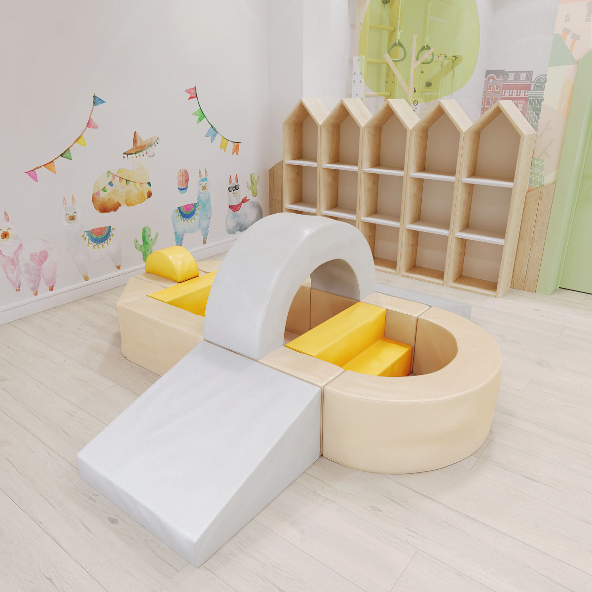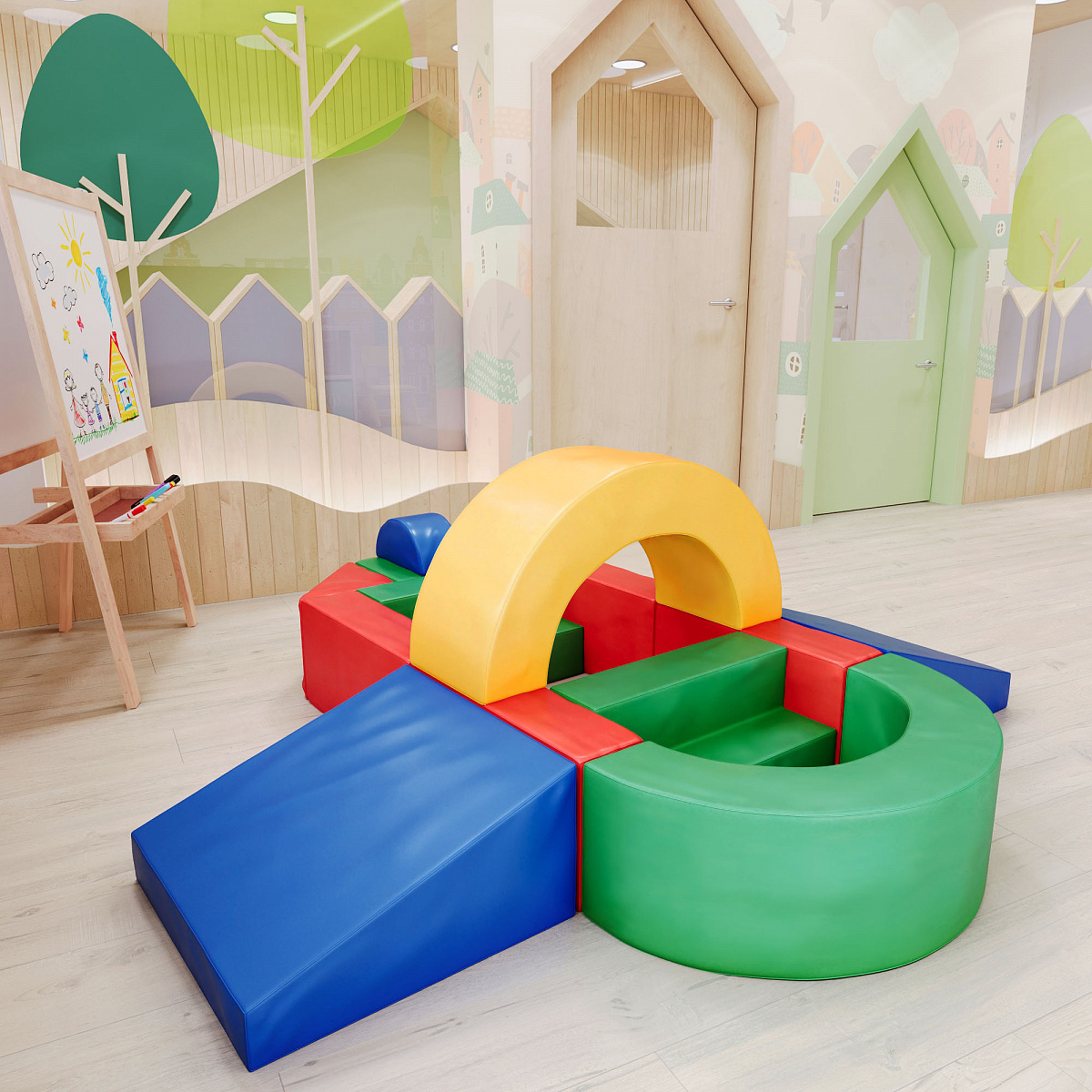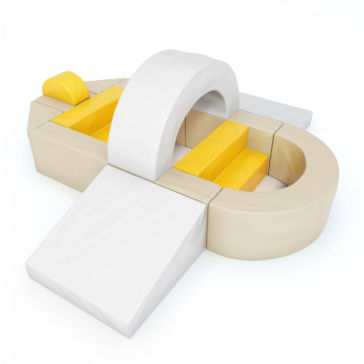 Приятные особенности:Мягкий игровой комплекс «Авиалайнер» - набор для детского строительства из больших разноцветных кубов. Обучает геометрическим формам, цветам и размерам. Развивает фантазию. Подходит как для детских дошкольных и младших школьных учреждений, так и для домашних развивающих игр.