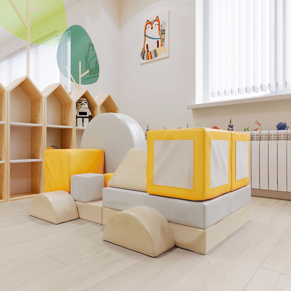 Приятные особенности:Мягкий игровой комплекс «Автофургон» - этот набор мягких элементов порадует будущих автолюбителей. Обучает геометрическим формам, цветам и размерам. Развивает фантазию. Подходит как для детских дошкольных и младших школьных учреждений, так и для домашних развивающих игр. В комплекте: Кубик, Мат, Цилиндр, Полуцилиндр, Треугольник.