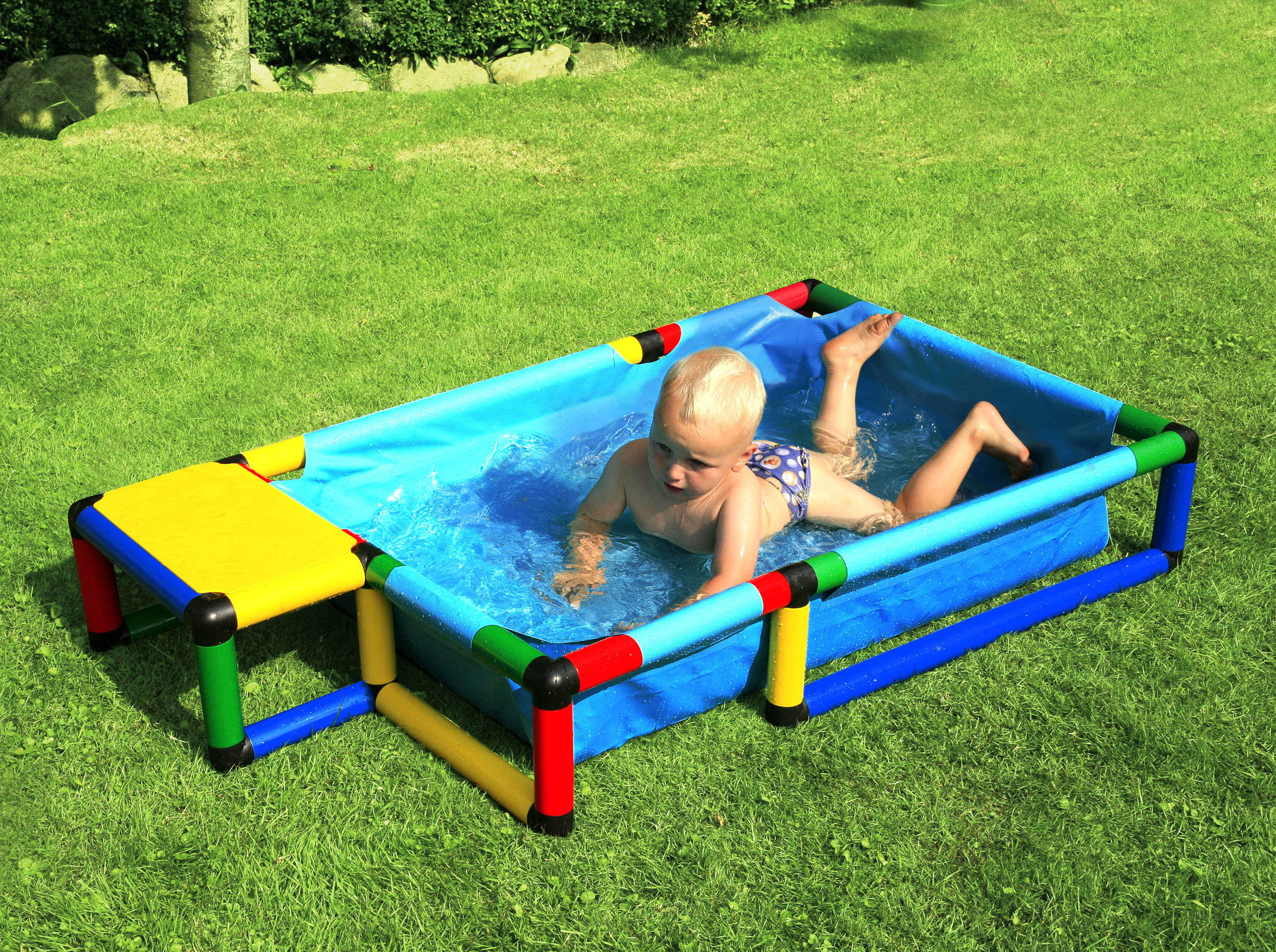 Этот бассейн прекрасно подойдёт для детишек, которые только знакомятся с водной стихией. Здесь их можно купать и даже научить плавать. А главное, что резвиться они будут на открытом воздухе. Одно из главных преимуществ бассейна в том, что его можно быстро собрать и разобрать, а потому его без проблем можно взять с собой на отдых куда угодно: на дачу, на природу, в другой город или даже в другую страну, если возникнет такая необходимость. От солнца и дождя малышей защитит тент, который вы, если посчитаете нужным, можете соорудить над ними в два счёта из палатки Quadro. В более прохладное время года бассейн элегантно превращается в песочницу.
