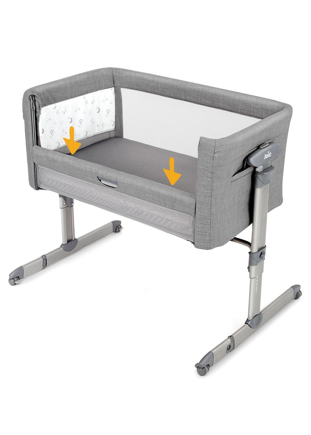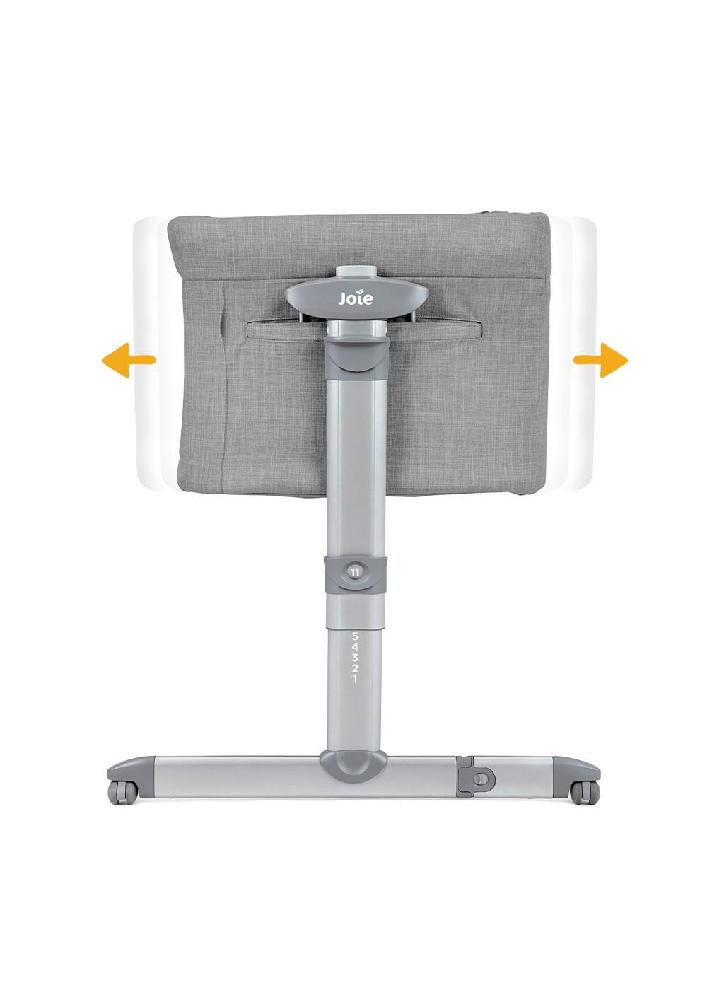 Приятные особенности:Приставная кровать Joie Roomie Glideукрасит детскую комнату и пригодится в путешествии. Также колыбельможно объединить со взрослой кроватью. Кормите, качайте и любуйтесь крохой, не вставая с постели. Такая возможность особенно удобна ночью: положите руку на животик малыша, покачайте, не открывая глаз. Доказано, что дети быстрее успокаиваются и дольше спят, чувствуя рядом мамину защиту.Чтобы покачать малыша, достаточно нажать клавишу, разблокирующую маятниковый механизм. Мерные покачивания из стороны в сторону быстро убаюкивают ребенка.