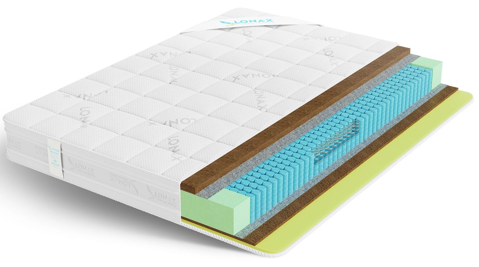 Приятные особенности:В модели "Lonax Cocos-Medium Econom" с одной стороны используется латексированная кокосовая койра - 100% натуральный жесткий материал, изготавливаемый из пролатексированных кокосовых волокон. С другой стороны используется современный искусственный экологически чистый материал ППУ (пенополиуретан) и для увеличения жесткости используется латексированная кокосовая койра - 100% натуральный жесткий материал, изготавливаемый из пролатексированных кокосовых волокон. В отличие от матраса “Lonax Cocos-Medium”, в этом матрасе используется вместо слоя натурального латекса слой ППУ (пенополиуретана), что делает его гораздо доступнее по цене, сохраняя надежность, комфорт и ортопедичность.