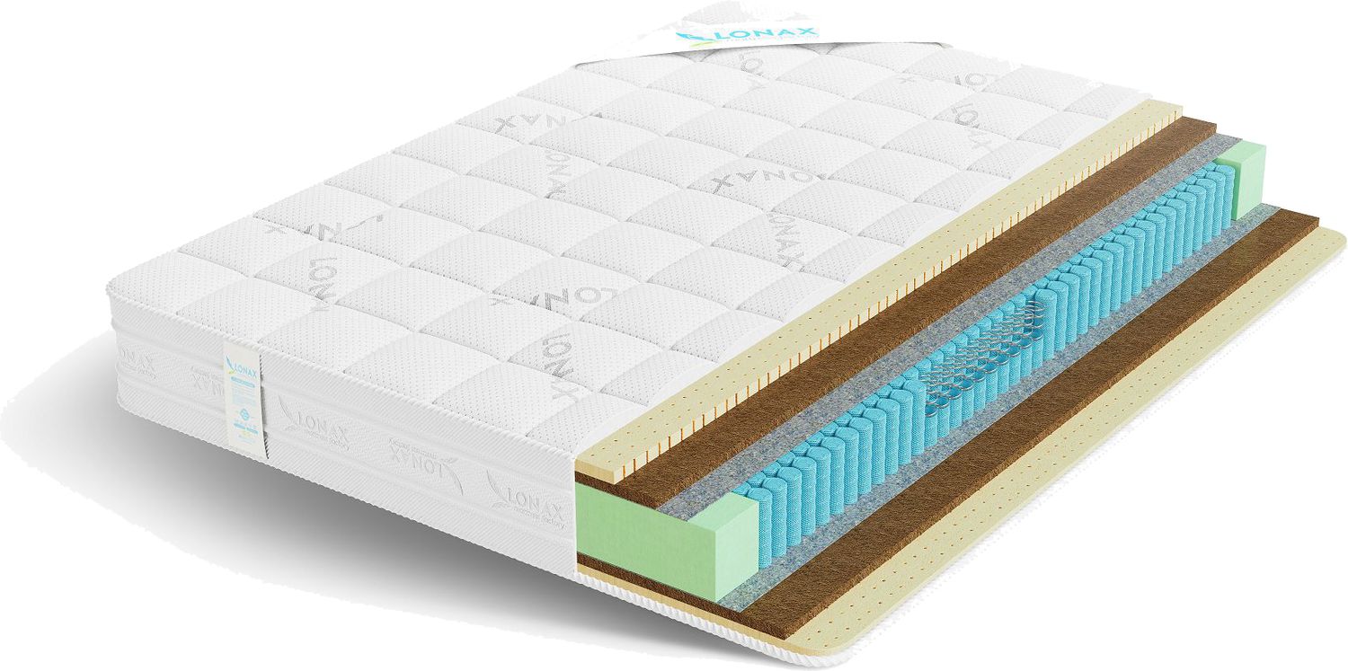 Жесткость данной модели выше, чем у “Lonax Medium” из-за более толстого слоя кокосовой койры и меньшего слоя натурального латекса.