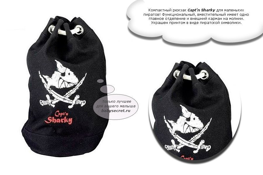 Приятные особенностирюкзака SpiegelburgCapt'n Sharky 30235:компактный рюкзак Capt’n Sharky для маленьких пиратов! Функциональный, вместительный имеет одно главное отделение и внешний карман на молнии. Украшен принтом в виде пиратской символики.