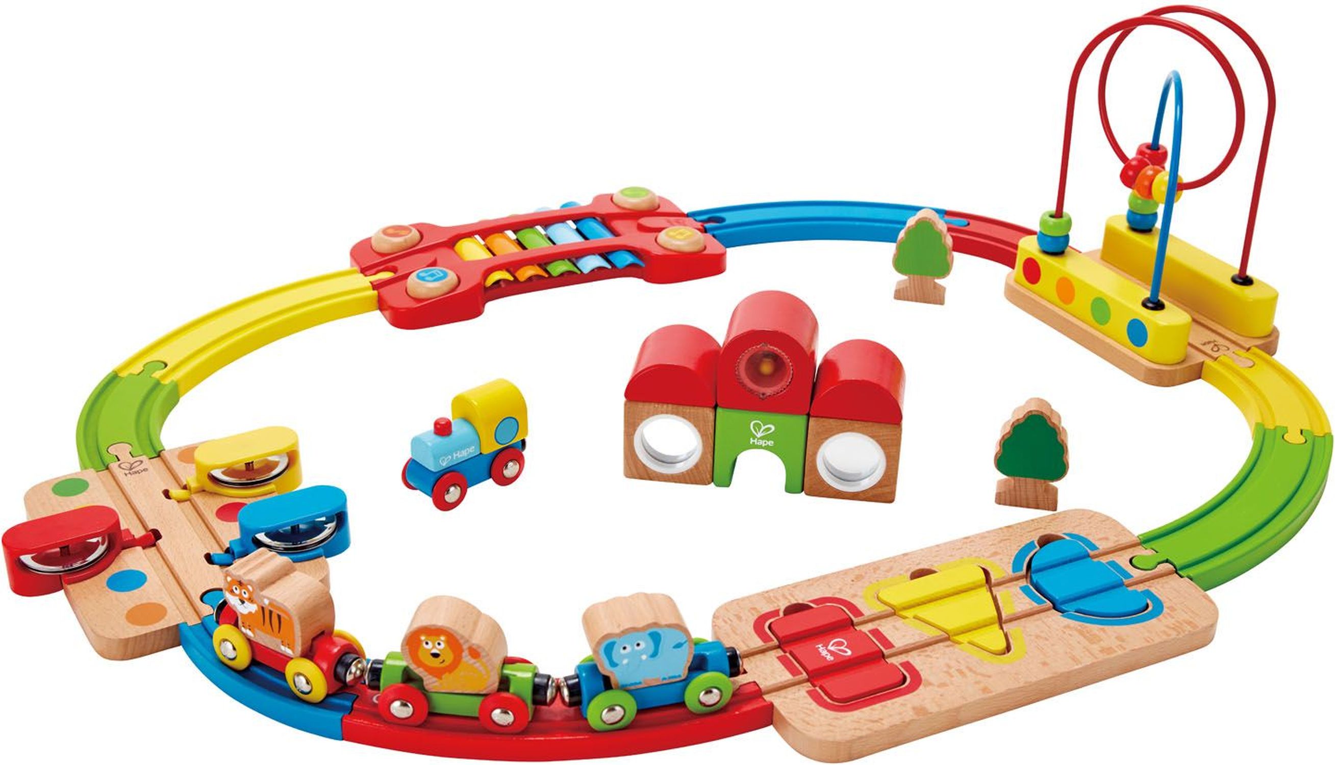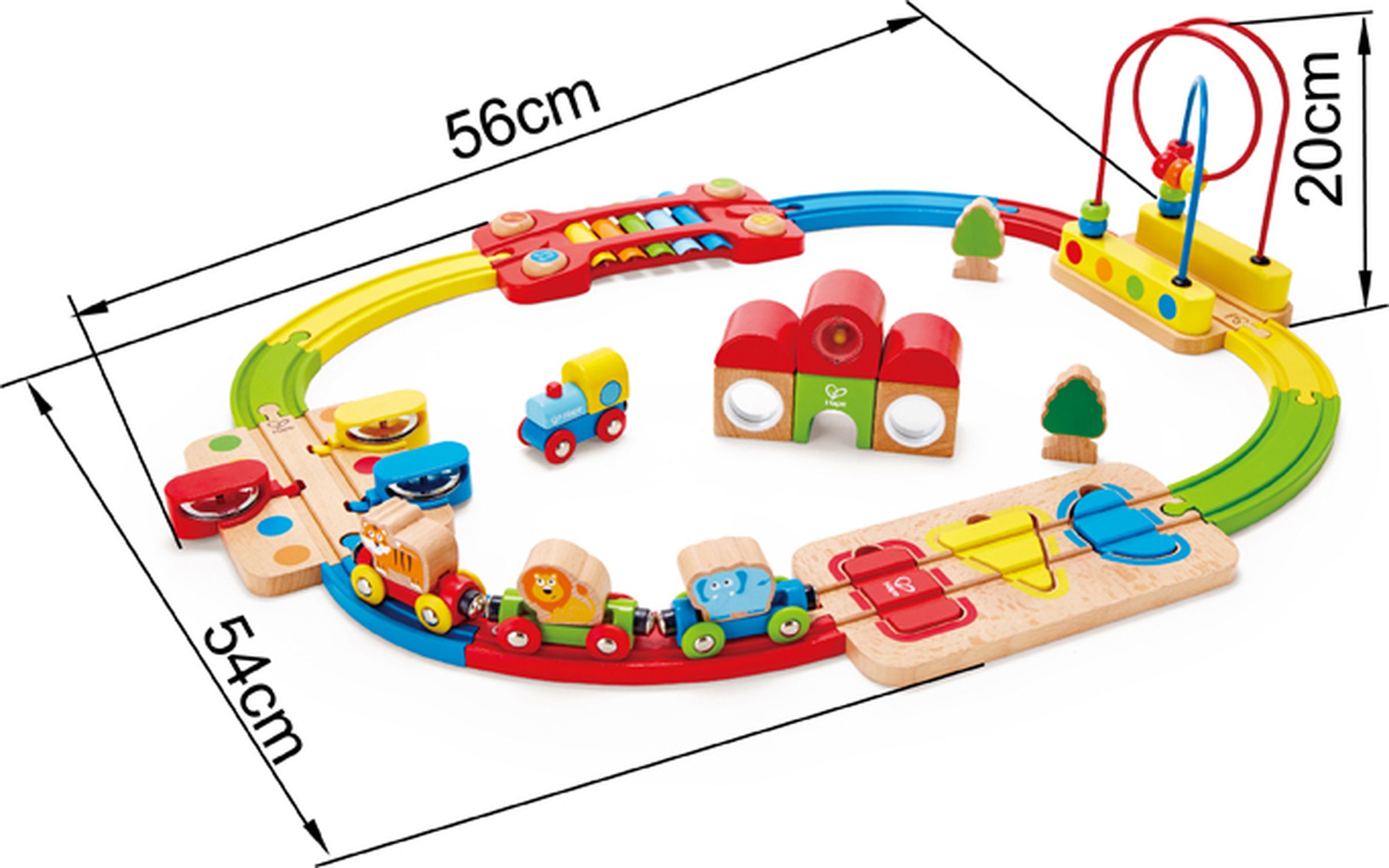 Приятные особенности:Сделайте время игры с красочным железнодорожным набором Радуга от Hape еще более увлекательным! Исследуйте трек, решая головоломки и создавая музыку по ходу движения поезда. Поместите треугольник, прямоугольник и полукруг в дорожку с соответствующими формами, чтобы поезд мог проехать дальше.