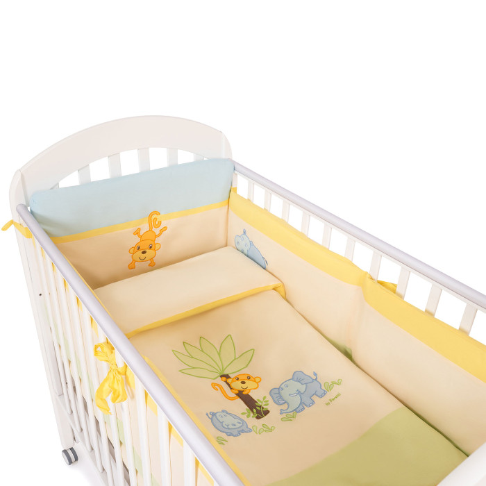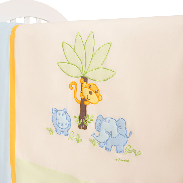 Приятные особенности:Комплект Feretti Jungle long 6 предметов выполнен по современным технологиям с использованием натуральных материалов, что характеризует качество продукции Feretti. Бактериостатическое постельное белье предотвращает развитие бактерий, иначе говоря, создает для ребенка гигиеничный климат. Постельный сет создаст уют малышу, и подарят ему спокойные и приятные сны. Наполнитель одеяла и подушки "Ингео" растительного происхождения, произведен из зерен кукурузы. Антиаллергенен. Хорошо удерживает тепло и выводит водяной пар. Наполнитель характеризуется мягкостью и пушистостью. Долго сохраняет первоначальные характеристики. Наполнитель бампера: синтепон. Ткань с бампера можно снимать и стирать.