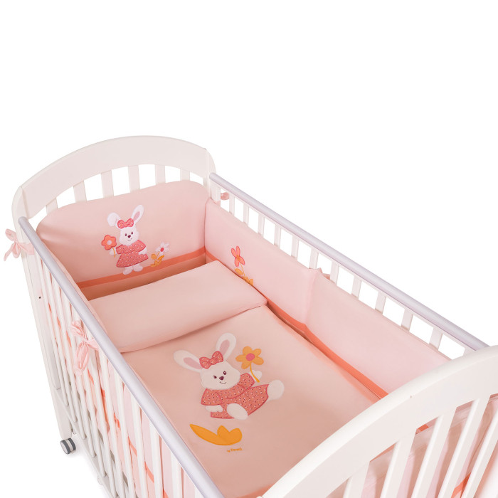 Приятные особенности:Комплект Feretti Lapin 6 предметов выполнен по современным технологиям с использованием натуральных материалов, что характеризует качество продукции Feretti. Бактериостатическое постельное белье предотвращает развитие бактерий, иначе говоря, создает для ребенка гигиеничный климат. Постельный сет создаст уют малышу, и подарят ему спокойные и приятные сны. Наполнитель одеяла и подушки "Ингео" растительного происхождения, произведен из зерен кукурузы. Антиаллергенен. Хорошо удерживает тепло и выводит водяной пар. Наполнитель характеризуется мягкостью и пушистостью. Долго сохраняет первоначальные характеристики. Наполнитель бампера: синтепон. Ткань с бампера можно снимать и стирать.