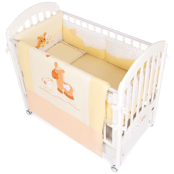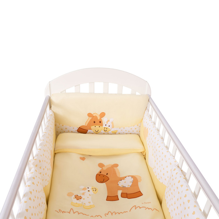 Приятные особенности:Комплект Feretti Pony long 6 предметов выполнен по современным технологиям с использованием натуральных материалов, что характеризует качество продукции Feretti. Бактериостатическое постельное белье предотвращает развитие бактерий, иначе говоря, создает для ребенка гигиеничный климат. Постельный сет создаст уют малышу, и подарят ему спокойные и приятные сны. Наполнитель одеяла и подушки "Ингео" растительного происхождения, произведен из зерен кукурузы. Антиаллергенен. Хорошо удерживает тепло и выводит водяной пар. Наполнитель характеризуется мягкостью и пушистостью. Долго сохраняет первоначальные характеристики. Наполнитель бампера: синтепон. Ткань с бампера можно снимать и стирать.