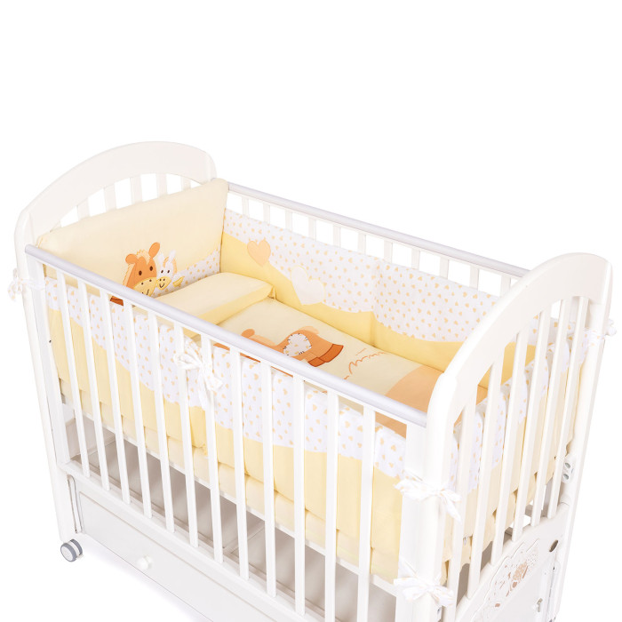 Общие размеры:Состав:100% хлопокРазмер пододеяльника (ДхШ), см:135х100Размер простынки (ДхШ), см:120х60Общий размер защитных бортиков (ДхВ), см:360х45Съемный чехол у защитных бортиков