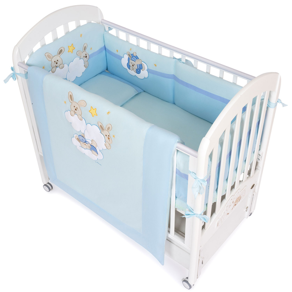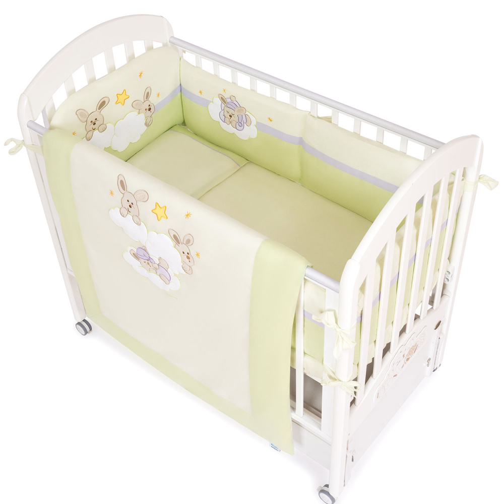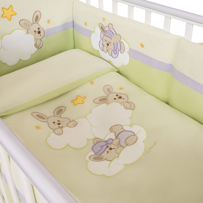 Приятные особенности:Комплект Feretti Rabbit long 6 предметов выполнен по современным технологиям с использованием натуральных материалов, что характеризует качество продукции Feretti. Бактериостатическое постельное белье предотвращает развитие бактерий, иначе говоря, создает для ребенка гигиеничный климат. Постельный сет создаст уют малышу, и подарят ему спокойные и приятные сны. Наполнитель одеяла и подушки "Ингео" растительного происхождения, произведен из зерен кукурузы. Антиаллергенен. Хорошо удерживает тепло и выводит водяной пар. Наполнитель характеризуется мягкостью и пушистостью. Долго сохраняет первоначальные характеристики. Наполнитель бампера: синтепон. Ткань с бампера можно снимать и стирать.