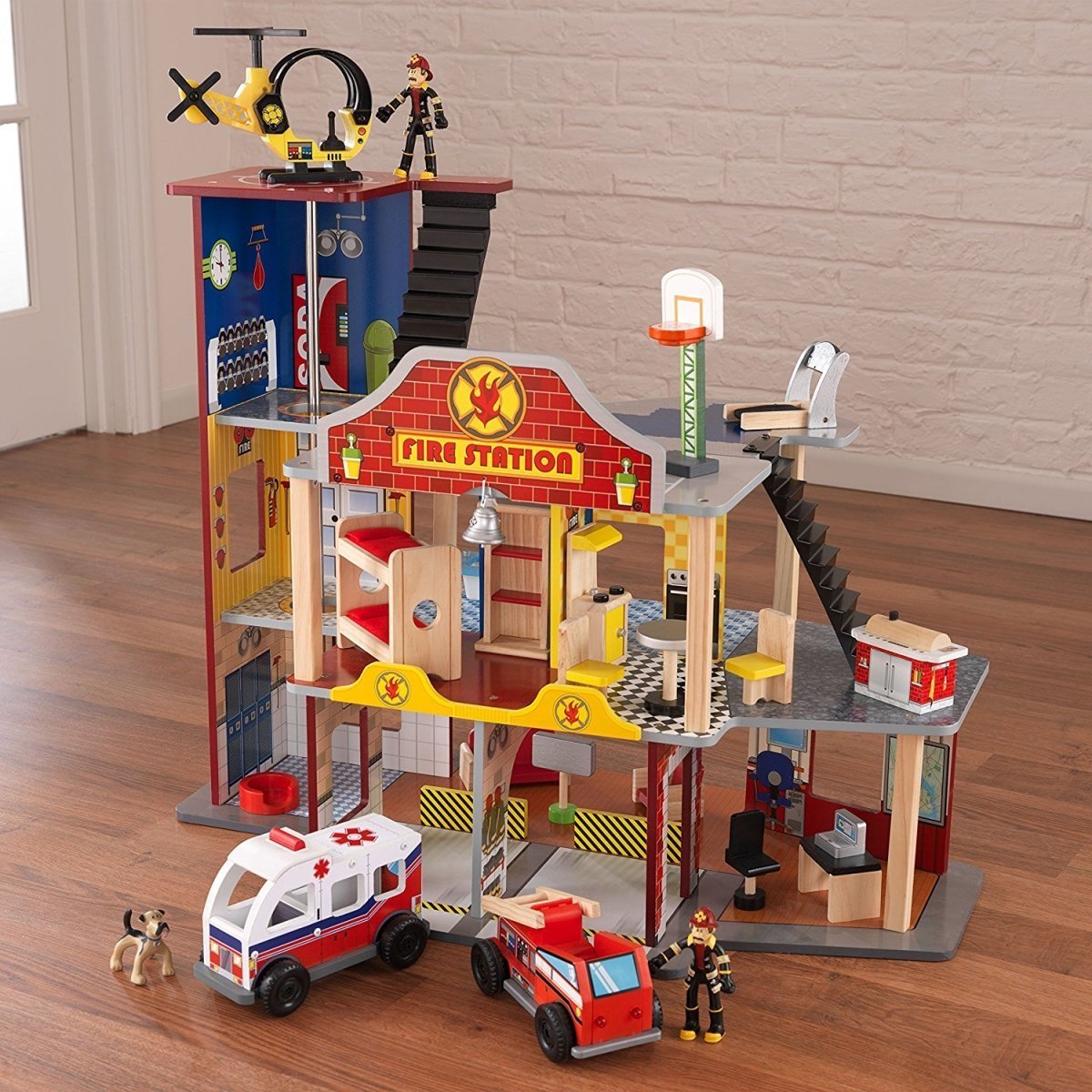Приятные особенности Набора Пожарно-Спасательная станция Kidkraft Делюкс: п ожарная станция состоит из нескольких ярусов, каждый из которых отличается своей удивительной локацией. В набор входят различные элементы и фигурки для создания интересной сюжетной игры. Внутри станции есть зал, кухня, ванная и даже баскетбольная площадка. Специальный колокольчик оповестит работников о пожаре, и они немедленно выедут на вызов. На крыше станции есть площадка для вертолетов, которая также может служить и парковочным местом для воздушного транспорта. Такая игра поможет развить у ребенка воображение и фантазию. Она предлагает увлекательное развлечение не только для дружеской компании, но и для самостоятельной сюжетно-ролевой забавы. Малыш сможет моделировать различные ситуации, осуществляя знакомство с азами такой интересной и полезной профессии, как спасатель.