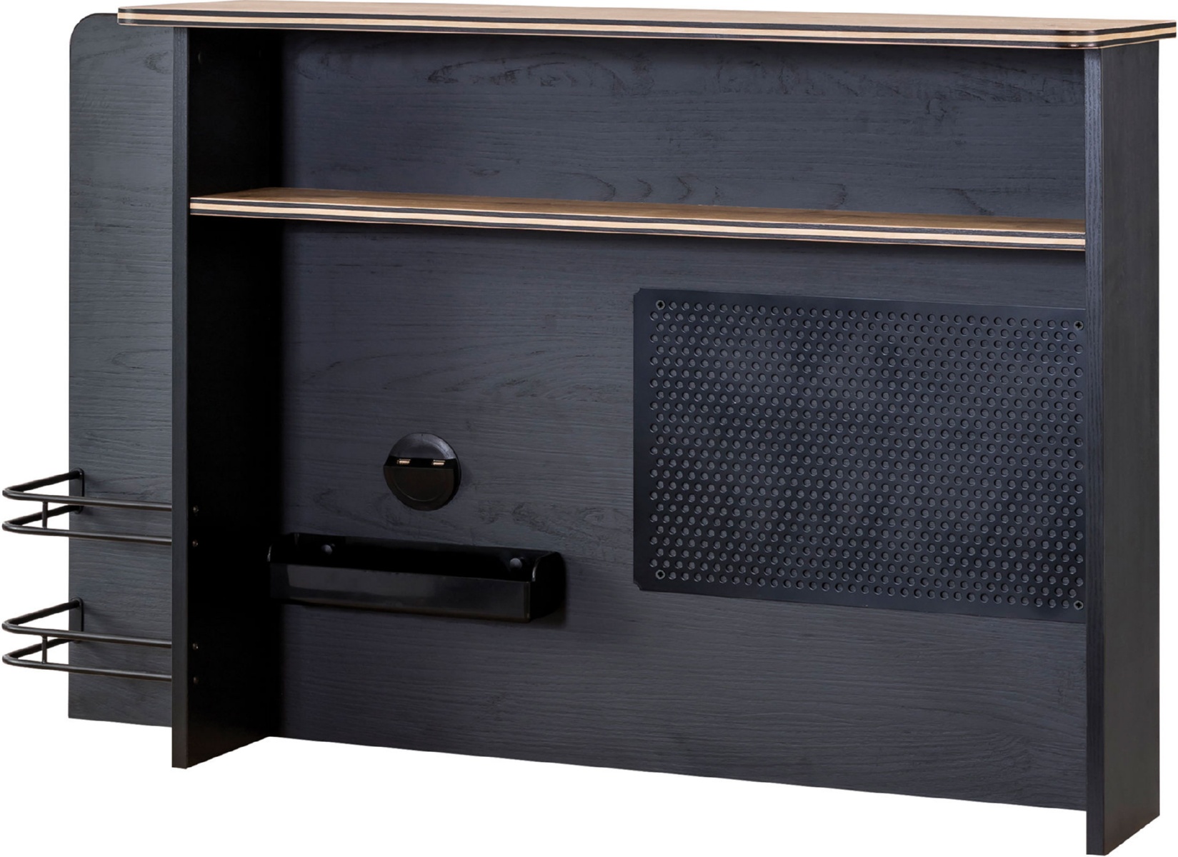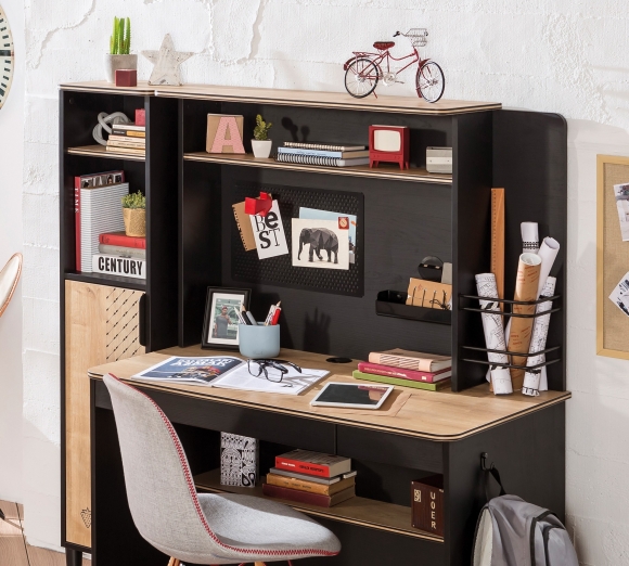 Приятные особенности:Модель в молодежном стиле и полностью соответствует их образу жизни, системе работы, предпочтениям в отношении функциональности. Надстройка коллекции Black не слишком громоздкая, имеет аккуратный вид, компактную, эргономичную комплектацию: Сбоку угловое ограждение для хранения свертков чертежей, рабочего инструмента и других вещей, для которых обычно нет места, где они сохранились бы в целостности. Встроенный выход для зарядного устройства смартфона прямо в надстройке с подставкой для него – настоящая находка для активной молодежи. Телефон всегда должен быть рядом, но когда батарея на мели, приходится уносить его к розетке далеко от стола – это не самое страшное, но уже не комфортно. Металлическая сеточка для крепления записей, фотографий, всего, что очень душевно и должно быть на глазах. Благодаря ей надстройка состоит не только из полочек, это функциональная панель мечты, особенно для творческой личности. Для максимальной практичности изготовлена из прочного, устойчивого к механическим нагрузкам материала – ДСП класса E1 с меламиновым покрытием. Пленка не только декоративная, она защищает от попадания влаги, появления царапин, отслоения ее от ДСП. Надстройка Cilek Black – молодежное и долговечное изделие, которое должно быть в повседневной работе.