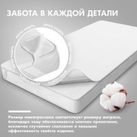 Приятные особенности: Мягкий наматрасник Nuovita 125x65 с эластичной резинкой-фиксатором поможет надежно защитить спальное место малыша от промокания и загрязнения. Изделие продлевает срок службы матраса и препятствует образованию пылевых клещей. Данная модель изготовлена из инновационного материала Membranstar (технология итальянской марки Stellini). Верхний слой легкого износостойкого чехла выполнен из мягкой махровой ткани (80% натуральный хлопок, 20% полиэстер), которая имеет трикотажную основу. Бархатистая текстура материала исключает скольжение простыни во время сна. Нижний слой представляет собой мембранное полотно — «дышащую» пленку с односторонней влаго- и воздухопроницаемостью. Слои наматрасника прочно соединены между при помощи способа горячей фиксации Hot-Melt, при котором не требуется применения клея. Хорошая воздухопроницаемость полотна не создает «парникового эффекта» и идеально поддерживает естественную терморегуляцию тела ребенка. Влагостойкая мембрана полностью защищает от протекания и ускоряет срок высыхания наматрасника. Антибактериальная пропитка ткани снижает риск появления неприятного запаха и является гипоаллергенной, что позволяет применять изделие для всех без исключения детей. Края наматрасника имеют аккуратную обработку. Фиксирующие резинки пришиты с применением специальных трикотажных швов.