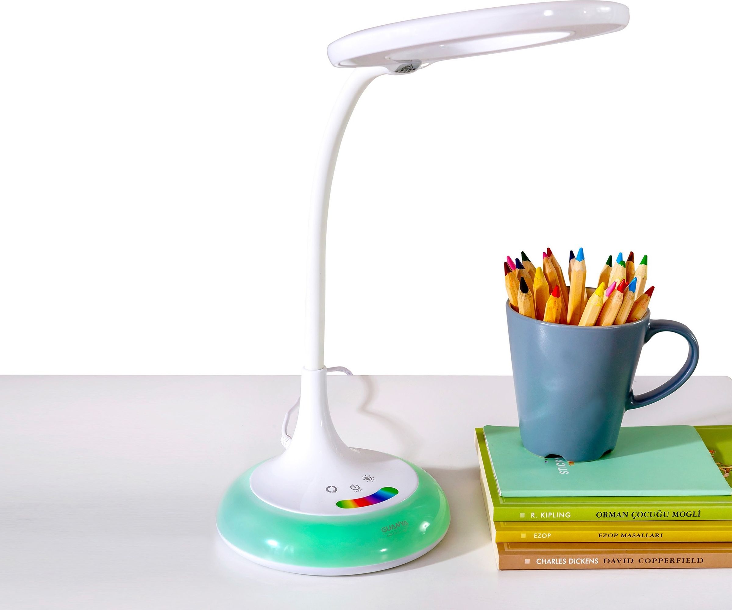 Приятные особенности:Для облегчения учебного процесса школьника, а также украшения внутренней обстановки комнаты предназначена необычная лампа Cilek Rainbow. Аксессуар изготовлен из качественных и долговечных материалов, направленных служить по своему назначению многие годы. Особенно порадует ребенка своей радужной подсветкой, способной придать атмосфере загадочность и неповторимость. Поможет устроить выполнение ежедневных уроков увлекательным занятием, ведь иногда возникает желание отвлечься, отдохнуть и насладиться аурой ярких или теплых тонов. Дополнит рабочий стол подростка любого пола.