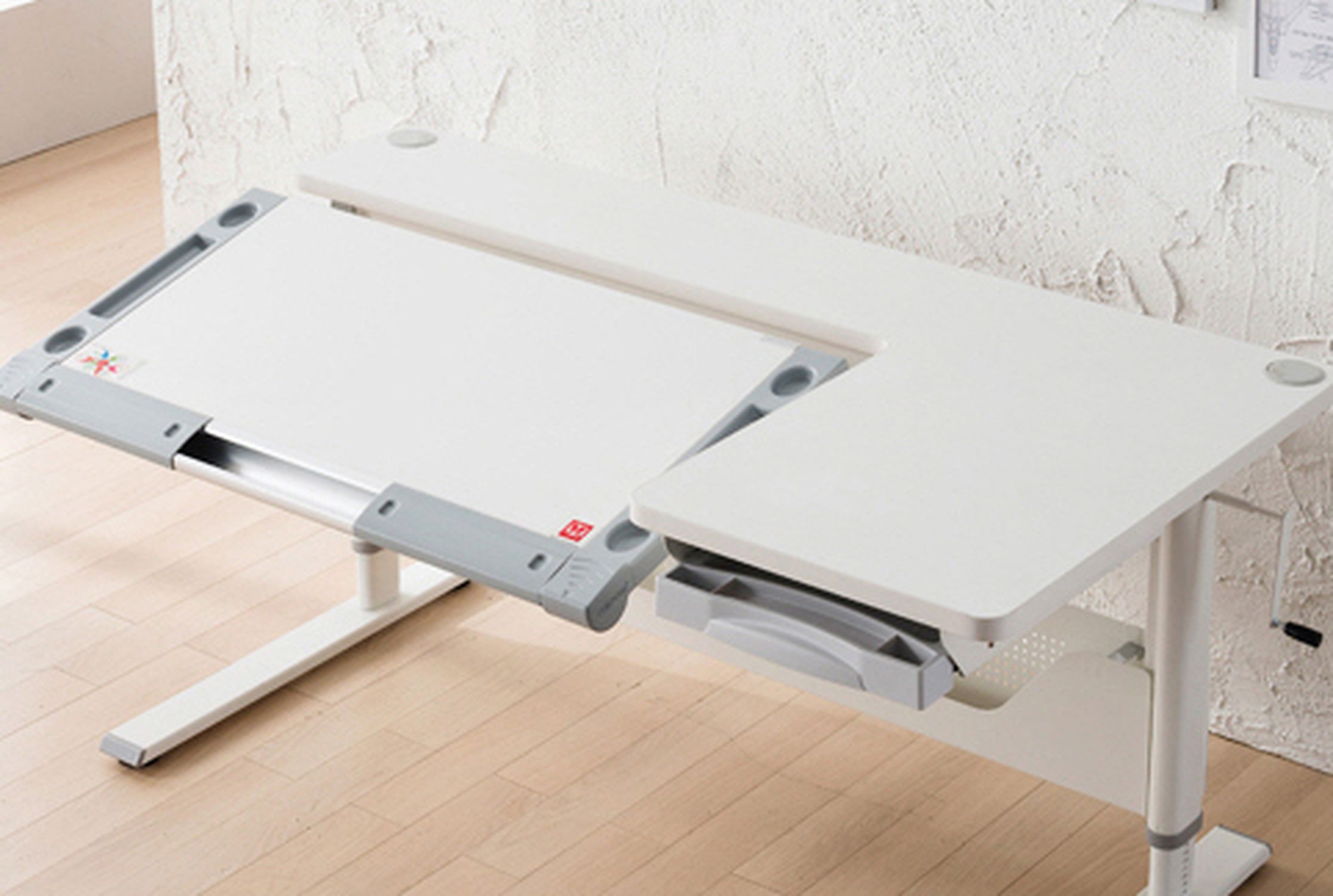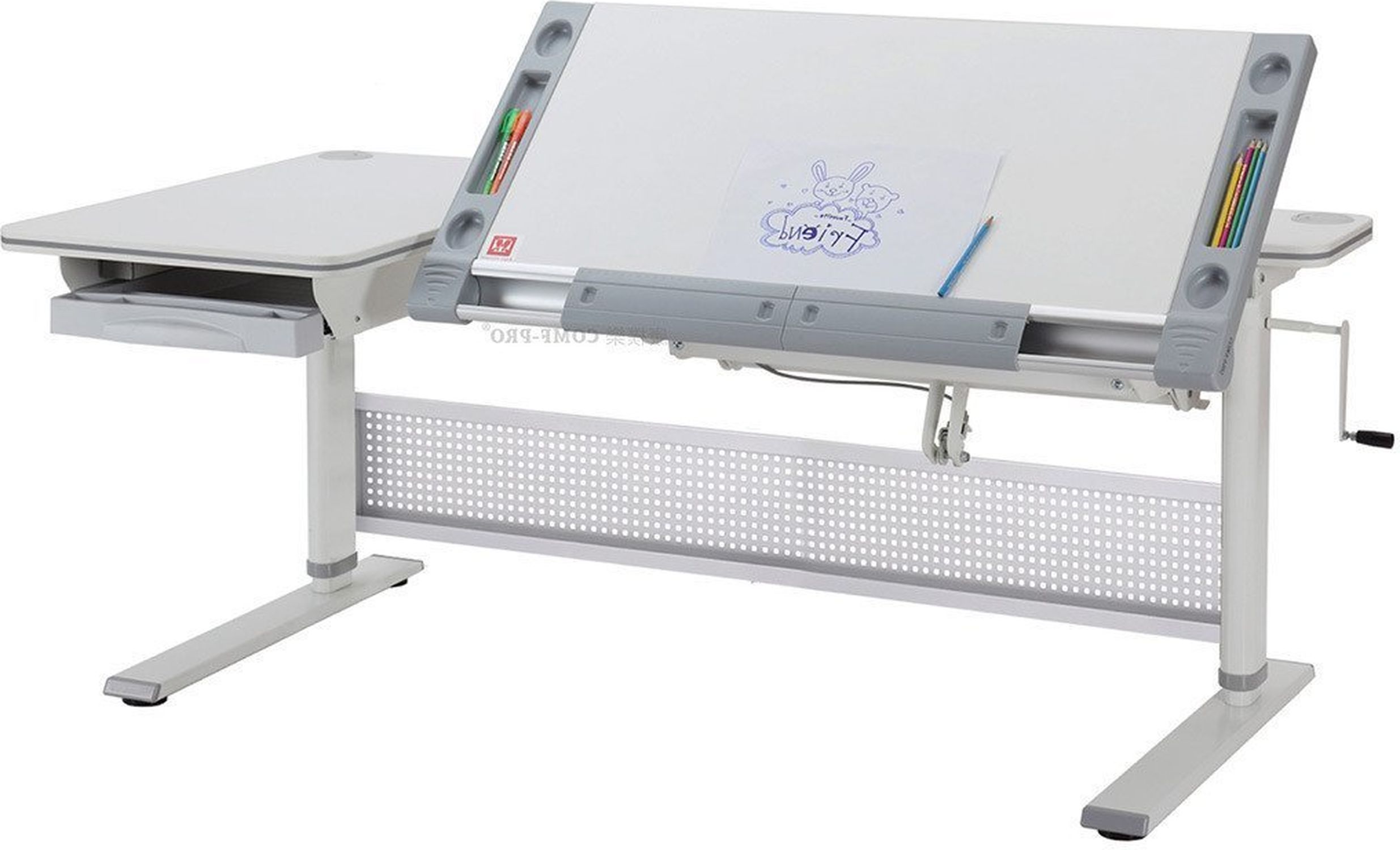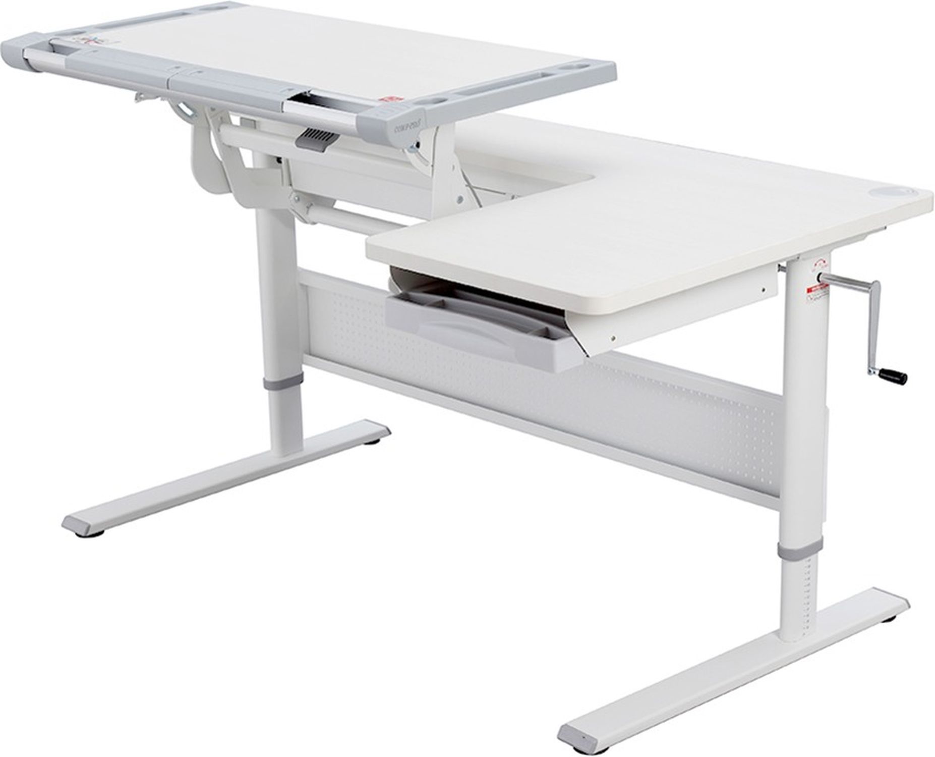 Приятные особенности:Расширенный диапазон настроек стола от положения сидя на полу до положения стоя для человека ростом свыше 190 см.Высота всего стола регулируется благодаря подъемному механизму, который приводится в движение ручкой сбоку под столешницей. А высота наклоняемой части столешницы регулируется отдельно немецким газ-лифтом STABILUS. Все это позволяет использовать стол как двух-трех летним детям, сидя на полу, так и высокому человеку - стоя.Покрытие столешницы -меламин эффективно защищающий от проникновения влаги и внешних воздействий.Регулируемые ножки - способны придать парте горизонтальное положение даже на не ровном полу.