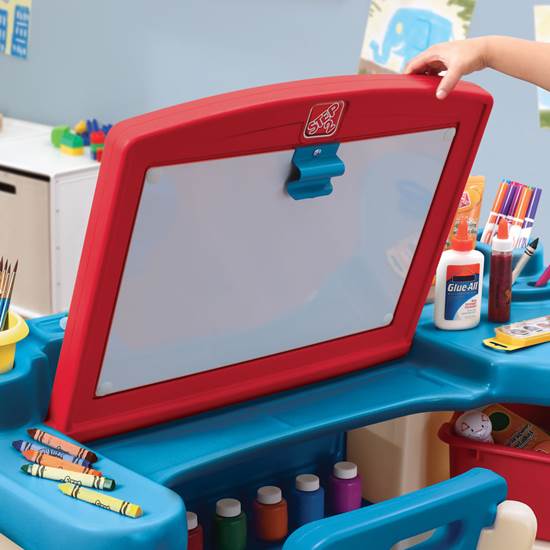 Приятные особенности: Мольберт для рисования и парта 2-в-1 – все что нужно для творчества.Съемные стаканчики под фломастеры помогут легко привести в порядок рабочий стол.