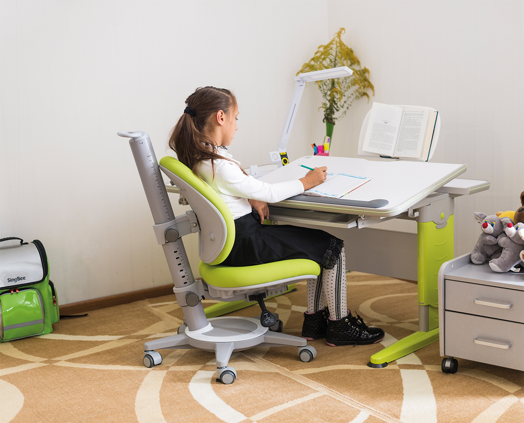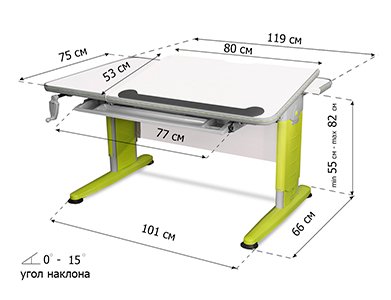 Приятные особенности:Ножки, с возможностью подстройки, позволяют выровнять положение стола в случае неровного напольного покрытия. Отверстие позволяет удобно и безопасно изменить угол наклона столешницы. Барьер препятствует соскальзыванию книг и тетрадей со стола при изменении угла наклона столешницы. Выдвижной пенал-органайзер позволяет хранить канцтовары и мелкие предметы в порядке, а также рассортировать их по размеру и назначению. Статичная часть столешницы увеличивает свободное пространство стола, также позволяет размещать дополнительные предметы и аксессуары. Изменение высоты стола легко осуществляется с помощью механической ручки.