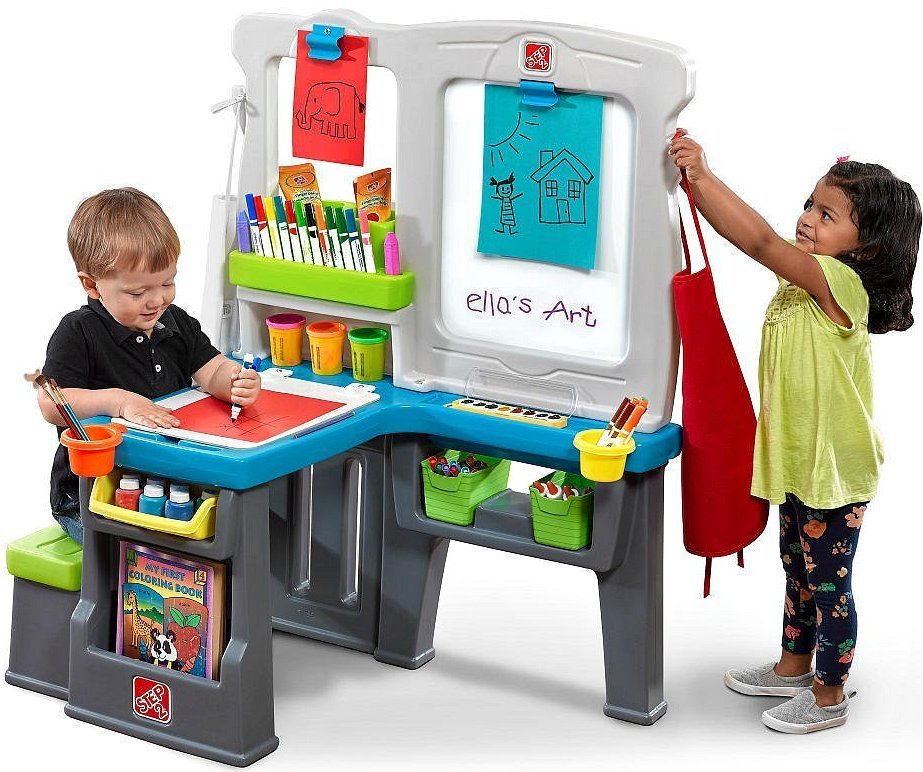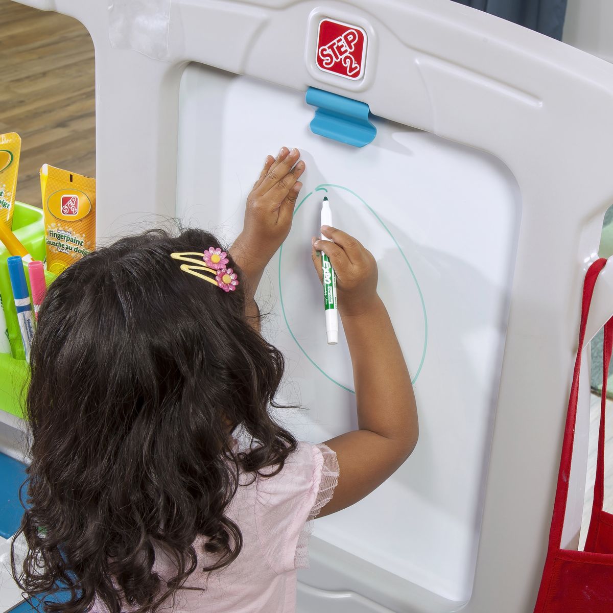 Приятные особенности парты Step 2 Маленький художник 869800:удобный и функциональный набор детской мебели для домашних занятий и творчества. Стол изготовлен из высококачественного безопасного пластика, имеет большое количество вместительных ящиков и отделений для детских принадлежностей. Набор выполнен в угловой форме - с одной стороны горизонтальный столик для письма, а с другой - вертикальный мольберт для рисования. Яркая жизнерадостная расцветка обязательно придется по вкусу вашему малышу.