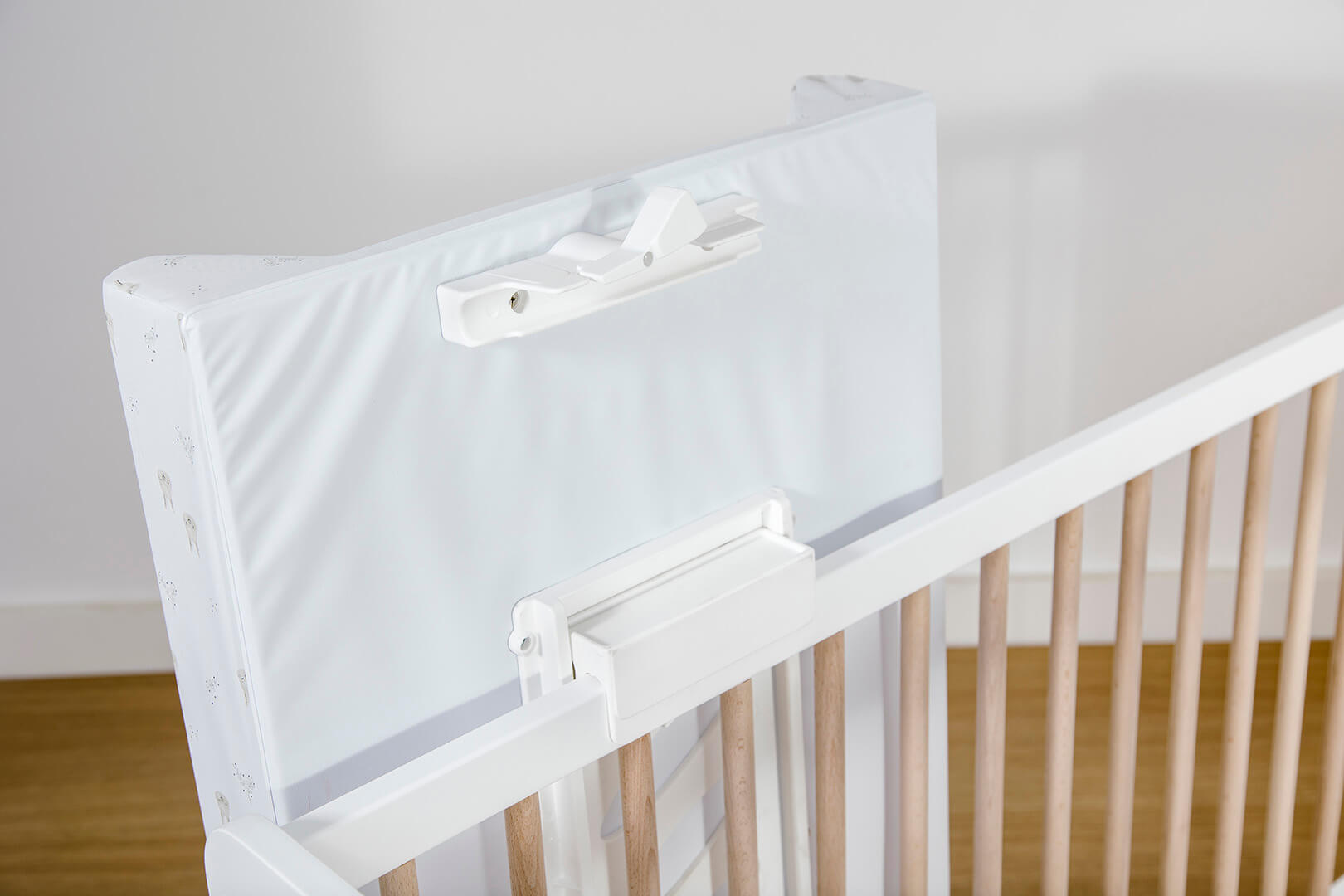 Приятные особенности пеленальной доски на кроватку Micuna CP-744:пеленальная доска Micuna – это оптимальный помощник для заботливых мам. На такой доске очень удобно делать массаж и пеленать малыша. Пеленальная доска устанавливается на бортики кровати, тем самым позволяя сэкономить место в комнате. Её удобно и просто закрепить при помощи специальных зажимов.